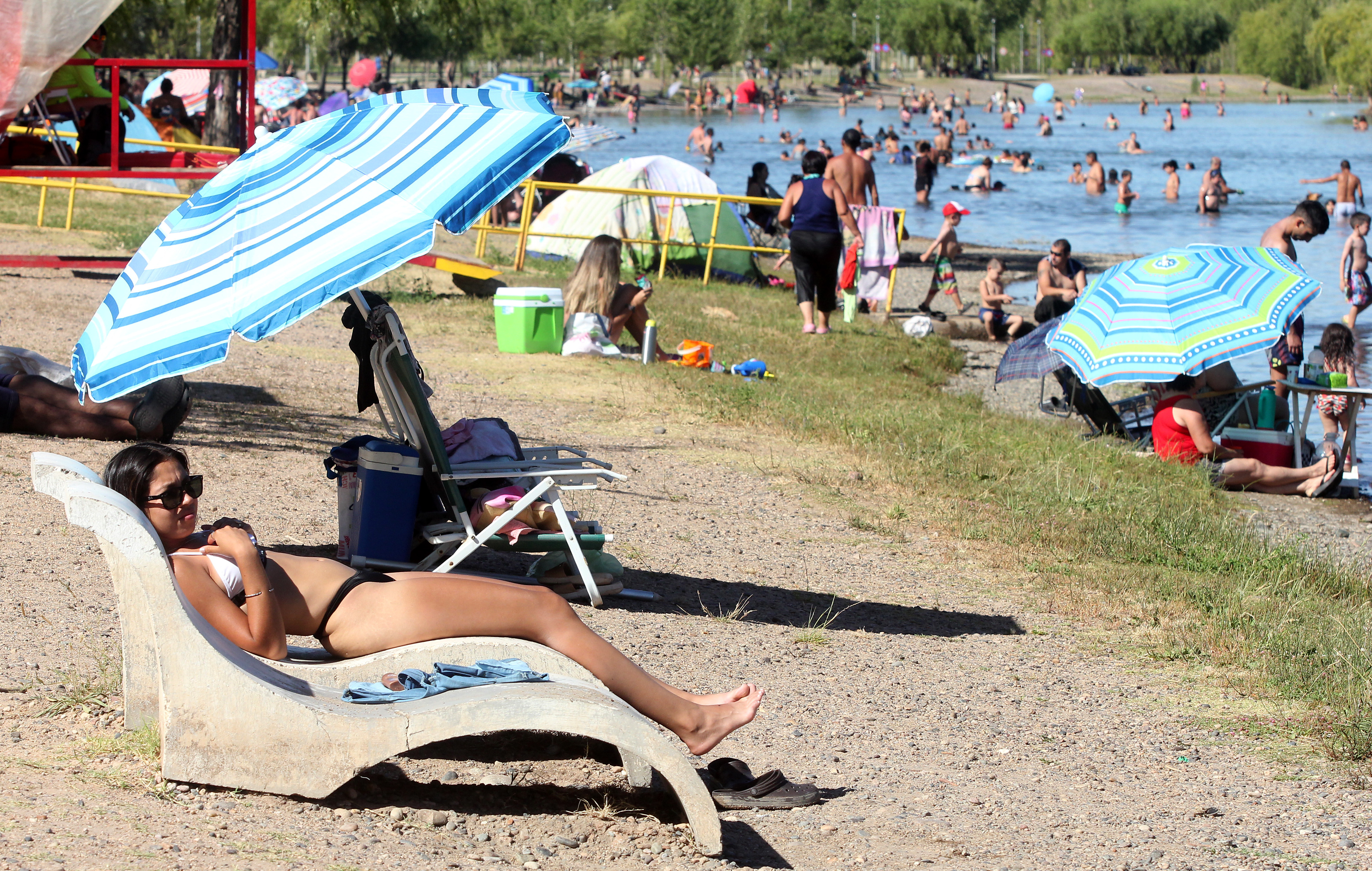 La ola de calor acercó masivamente a los vecinos a los balnearios sobre el Limay. El sábado prevé una jornada de 37 grados entre las 14 y las 18 horas, con descenso menor a los 30 grados después de las 22.