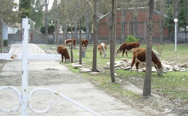 Un hecho insólito se registró en Chos Malal: vacunos de gran porte pastaron por varias horas en el cementerio local. [Ver nota]