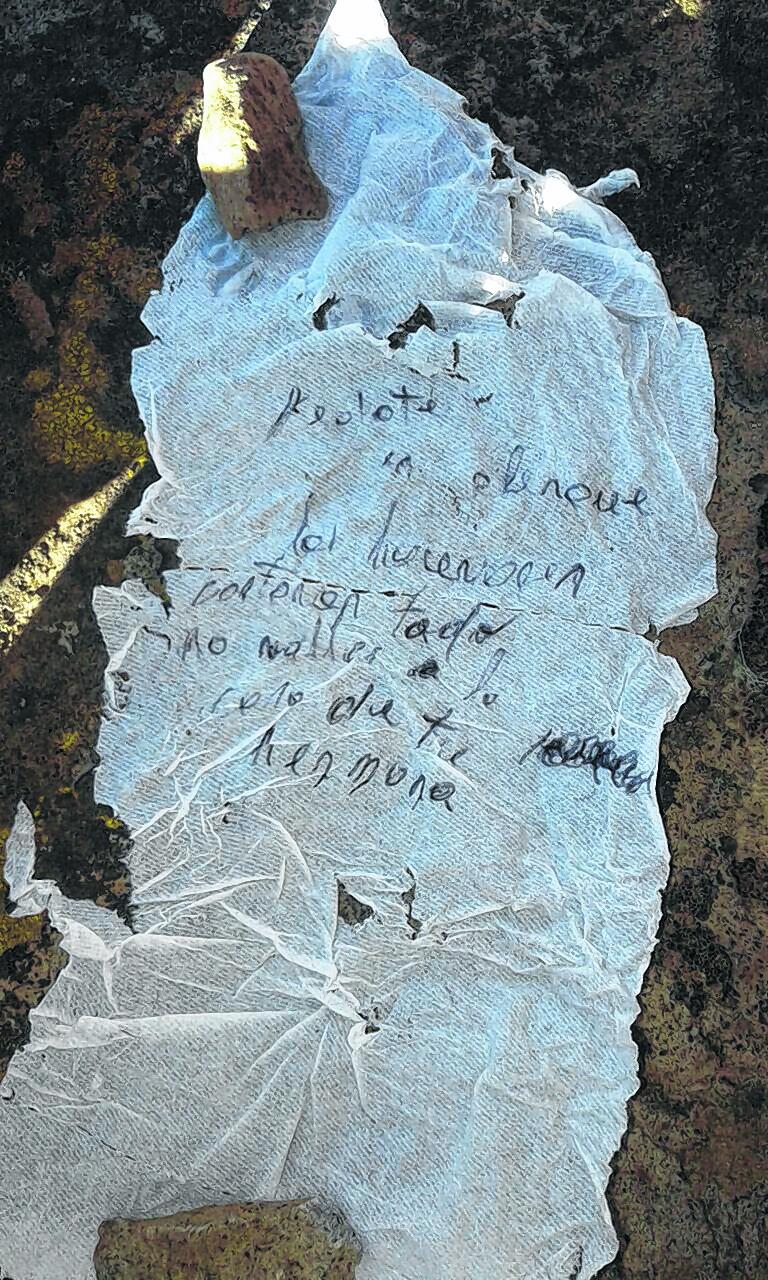 El hallazgo del mensaje en el papel aceleró los tiempos. Alcón se fue de la piedra al cheque, un refugio que cerca. Y allí los investigadores encontraron una bolsa de dormir y trozos de gomaespuma que podrían haber sido utilizados como almohada.