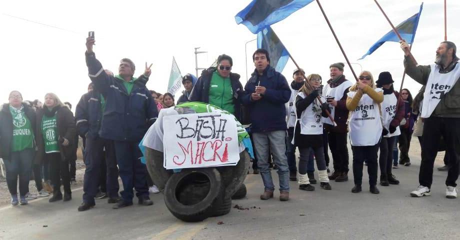 A media mañana, pocas horas después de que comenzara el corte de la ruta entre Senillosa y Arroyito, un grupo de trabajadores estatales que están nucleados en ATE y ATEN se apostaron a la vera de la 22, en el ingreso a Plaza Huincul. Los manifestantes no interrumpen el paso pero sí entregan volantes a los conductores que se trasladan por ese lugar.