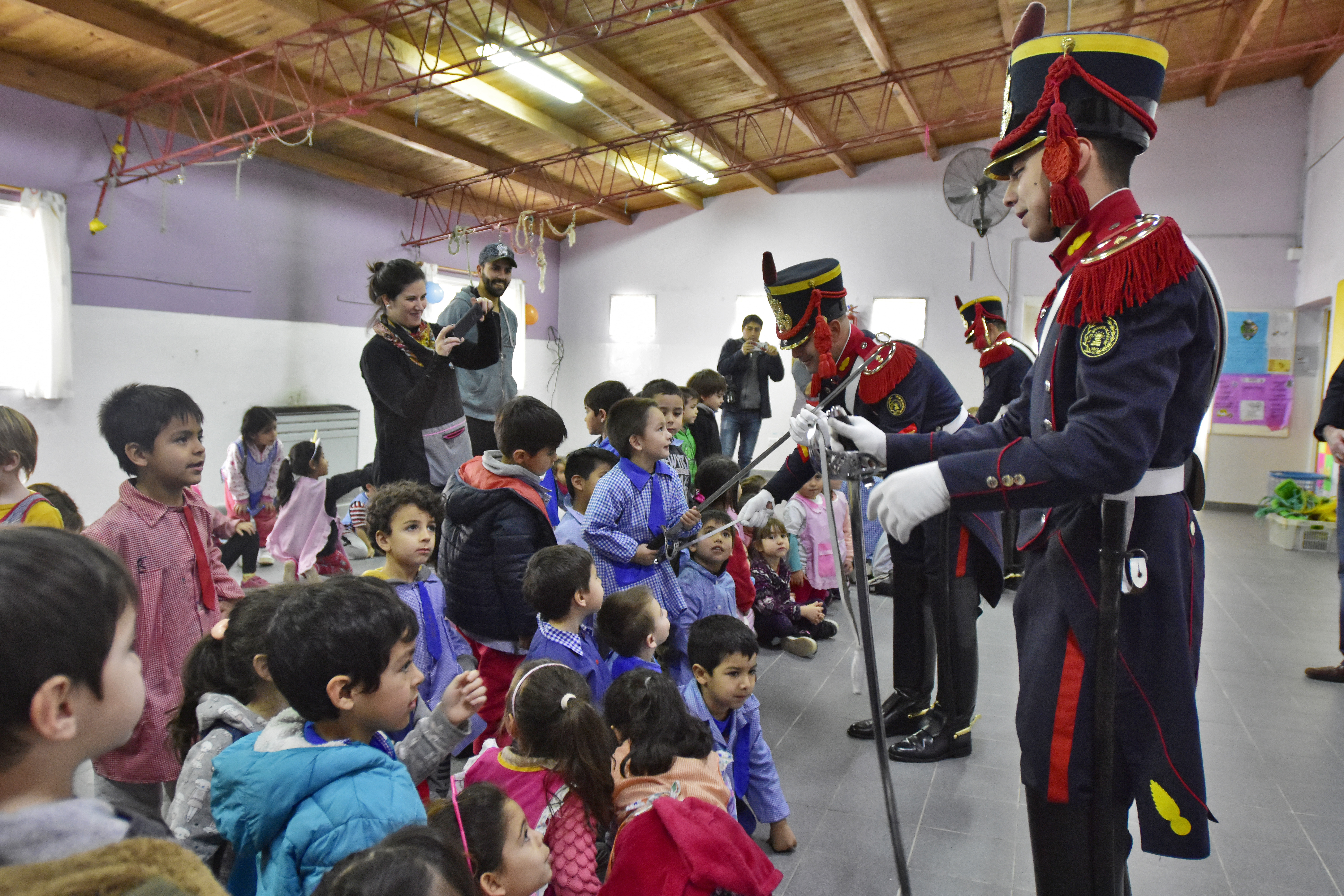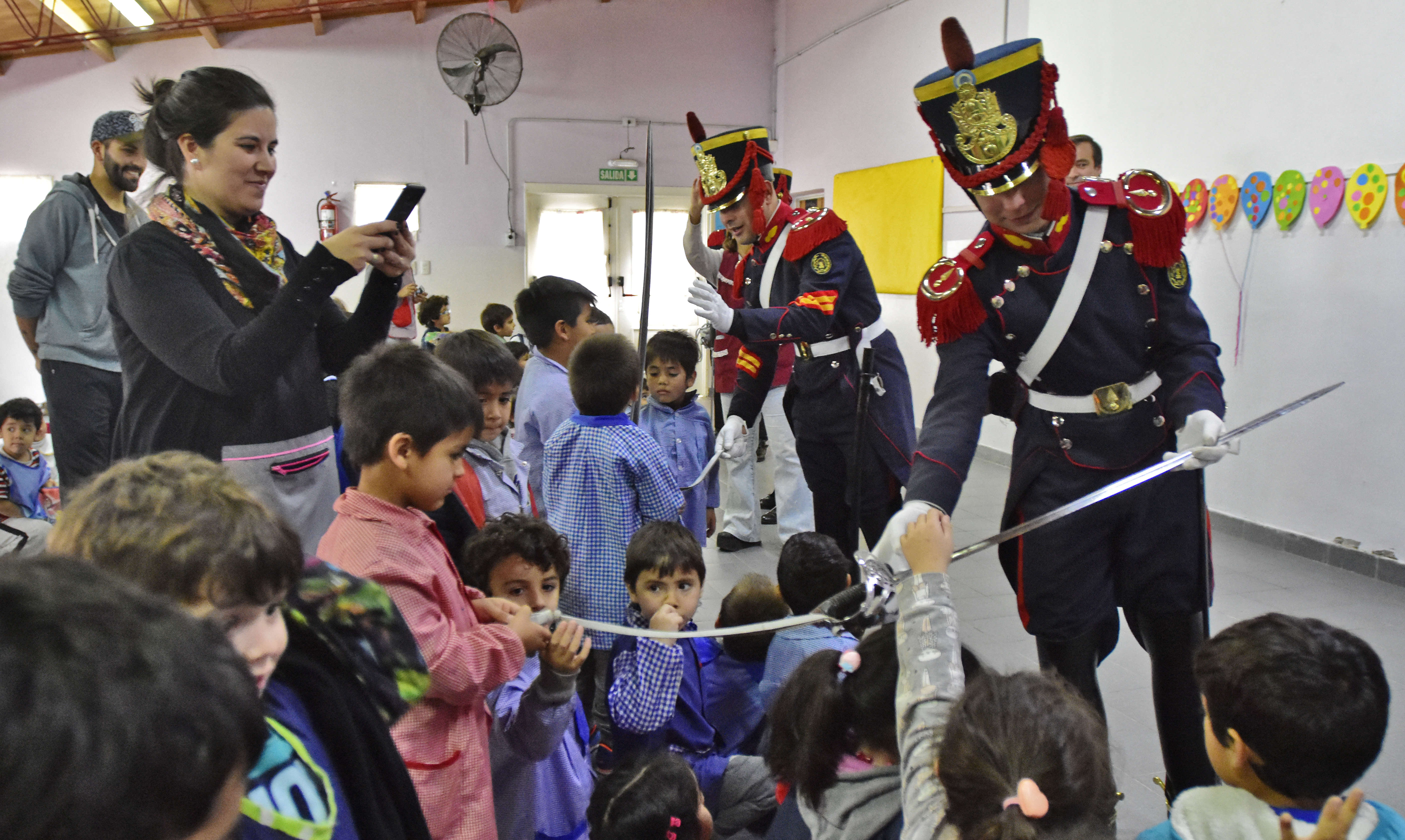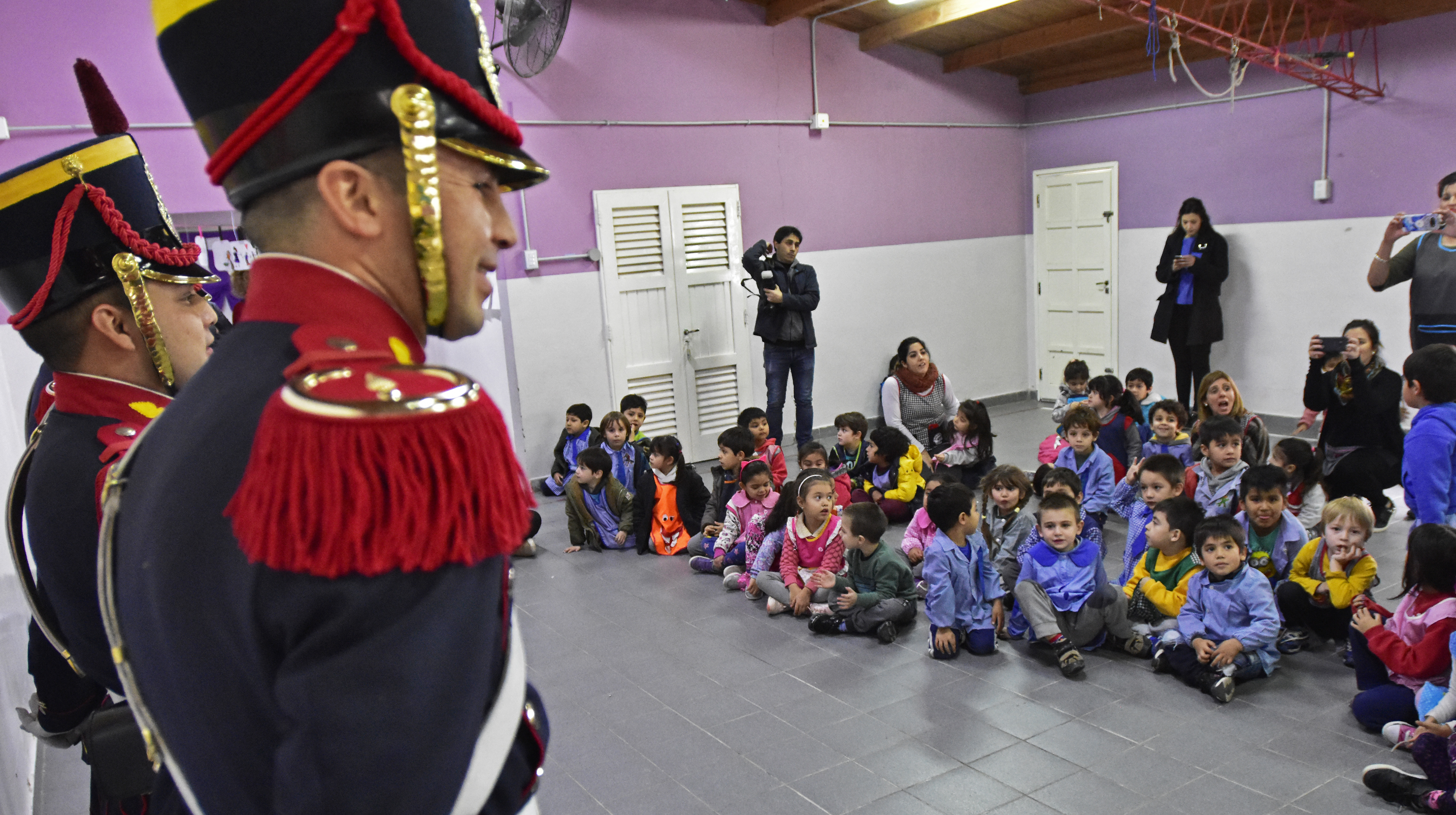 Llegaron para participar de la Promesa de Lealtad a la Bandera que harán los chicos de cuarto grado. Esta mañana hicieron el recorrido por algunas escuelas y jardines para que todos los chicos puedan tener el honor de ser los protagonistas del protocolo del histórico Regimiento.