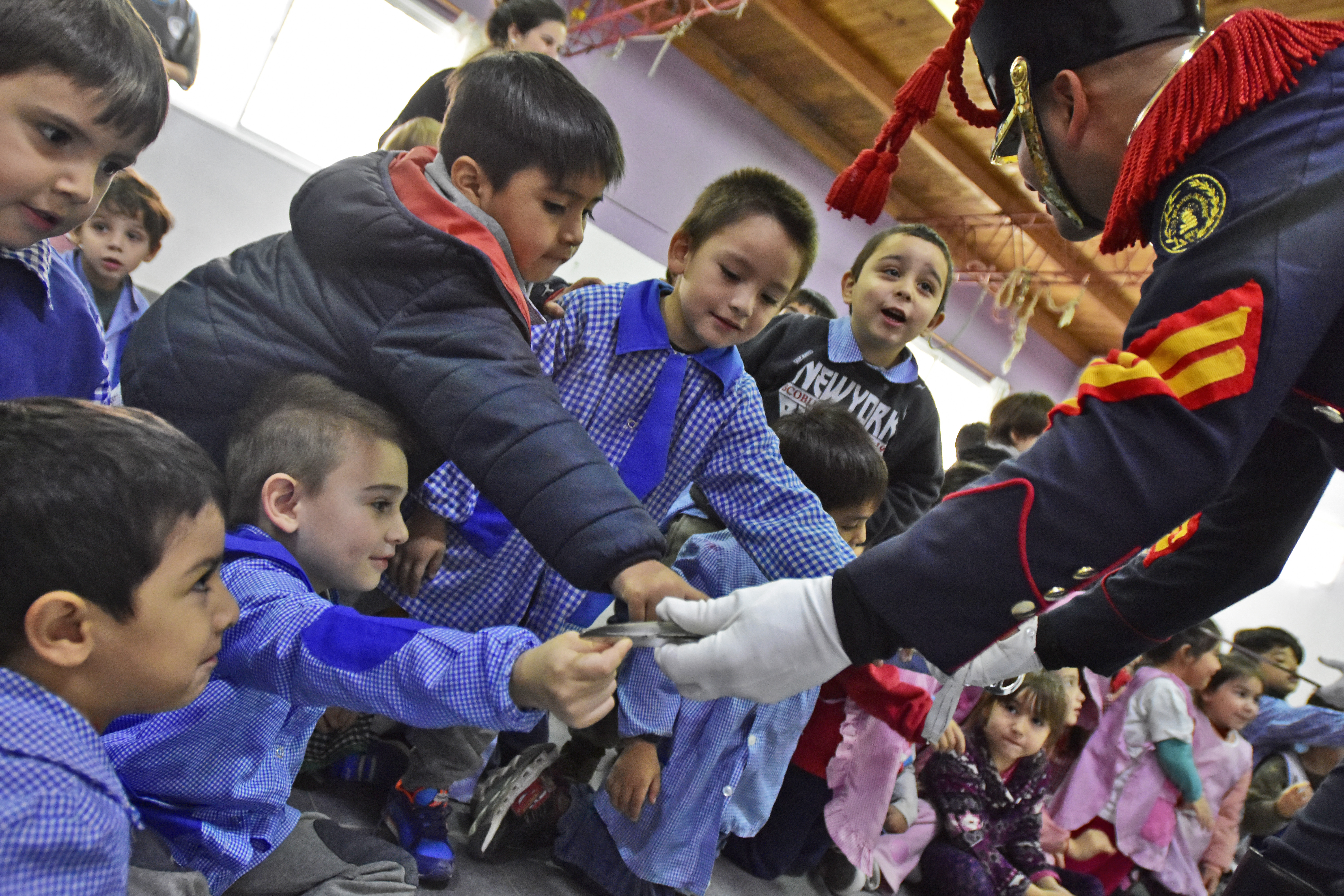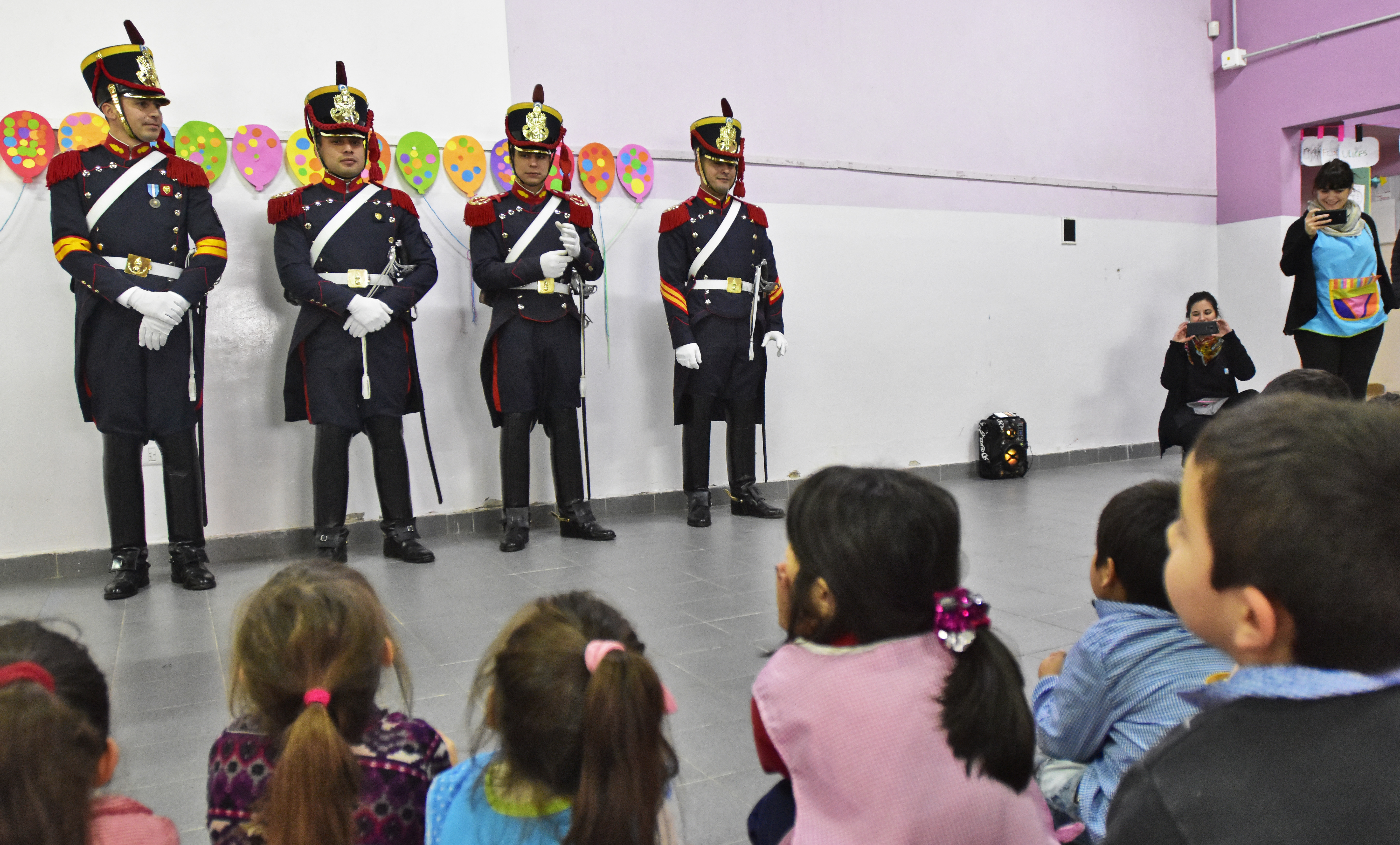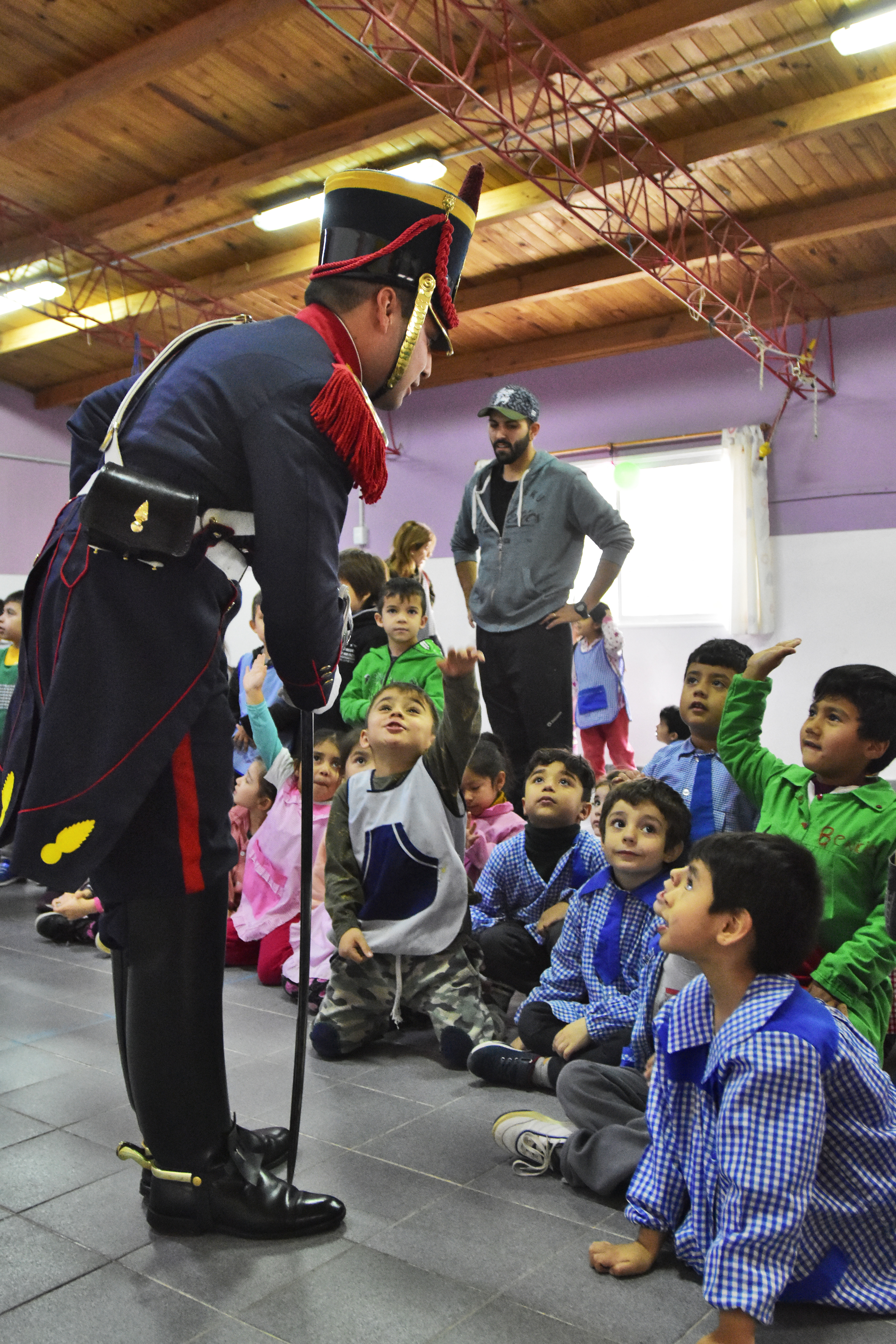 Llegaron para participar de la Promesa de Lealtad a la Bandera que harán los chicos de cuarto grado. Esta mañana hicieron el recorrido por algunas escuelas y jardines para que todos los chicos puedan tener el honor de ser los protagonistas del protocolo del histórico Regimiento.