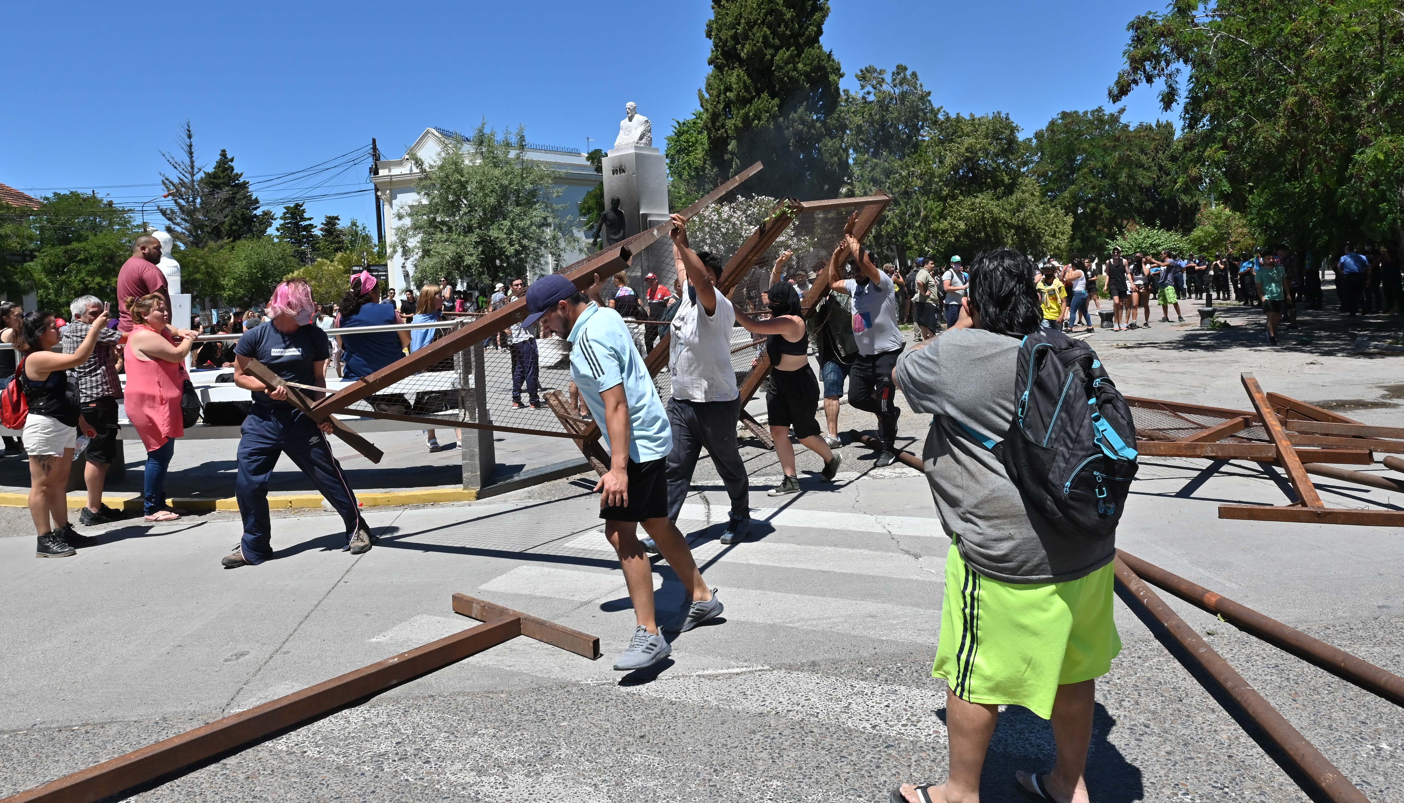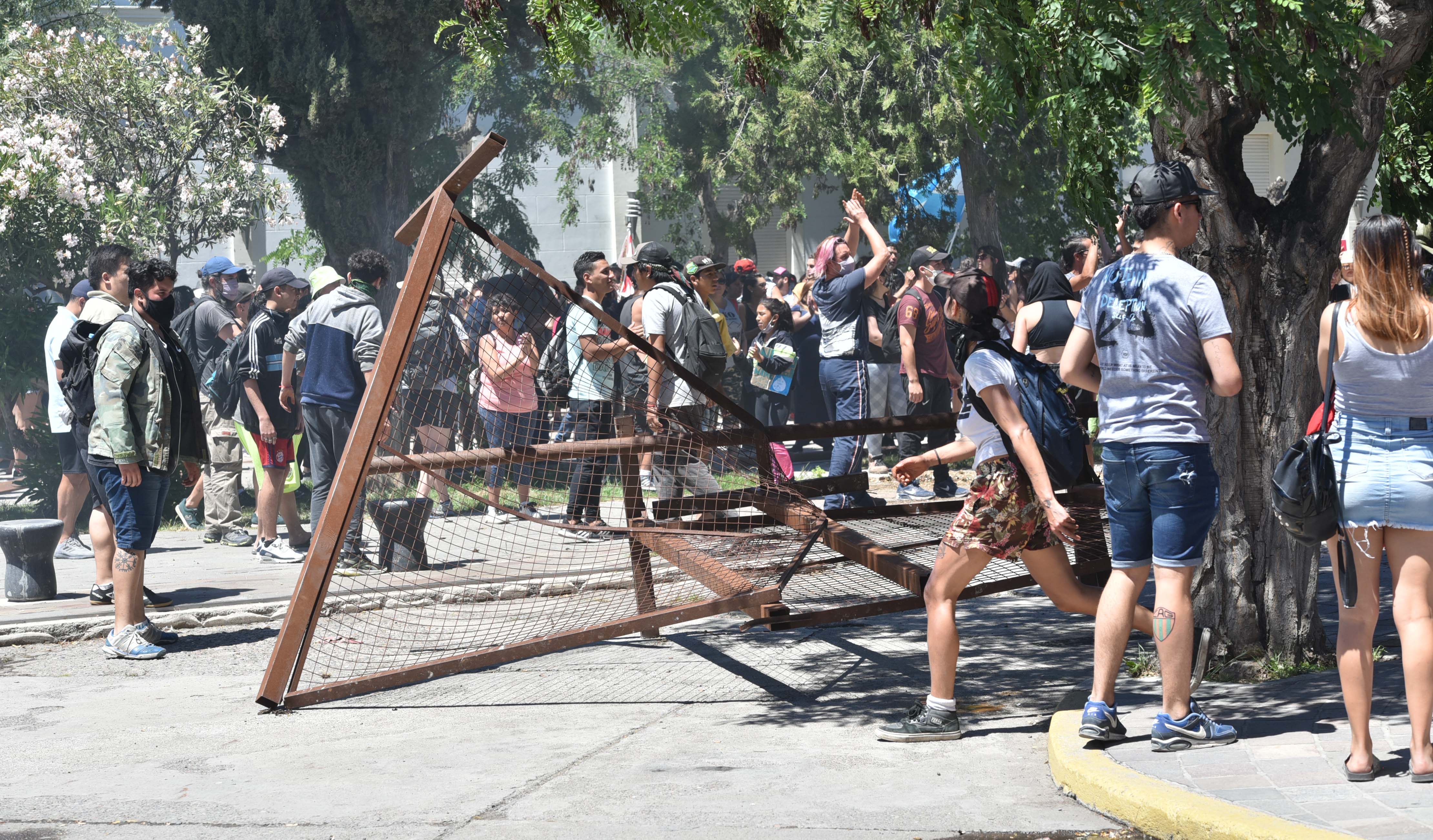 Los incidentes -que en principio tuvieron lugar en el acceso central a la Legislatura- se trasladaron luego a la parte posterior, donde los manifestantes bloquearon la salida de los diputados provinciales.