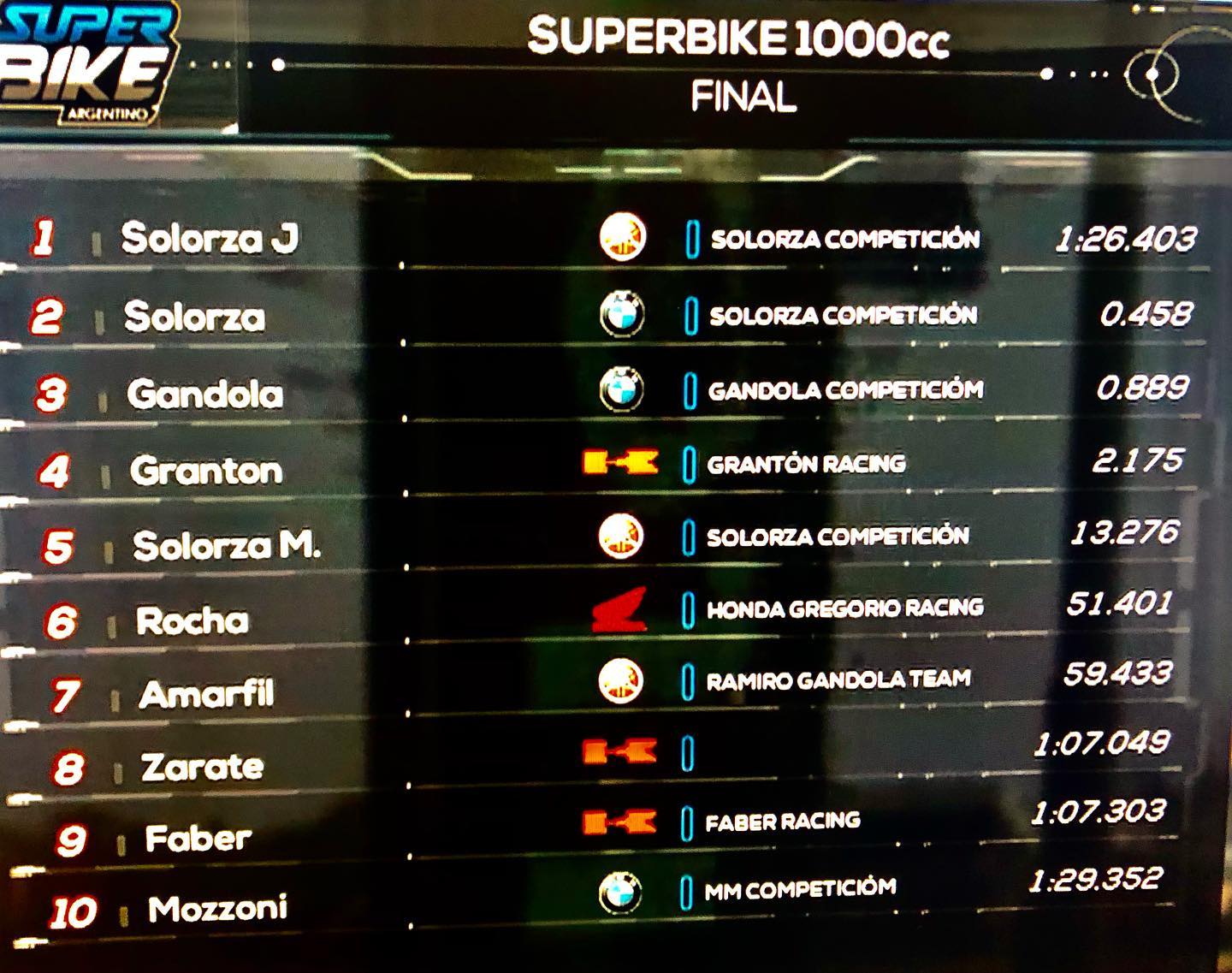 Lo de los Solorza en la última fecha fue notable. Juan clasificó tercero y se impuso en la final después de doblegar a Marco, quien hizo la pole, pero largó mal y quedó séptimo antes de recuperarse y llegar a estar adelante en las últimas vueltas. Para completar la tarea, Martín, el piloto argentino en actividad con más títulos, quedó quinto.