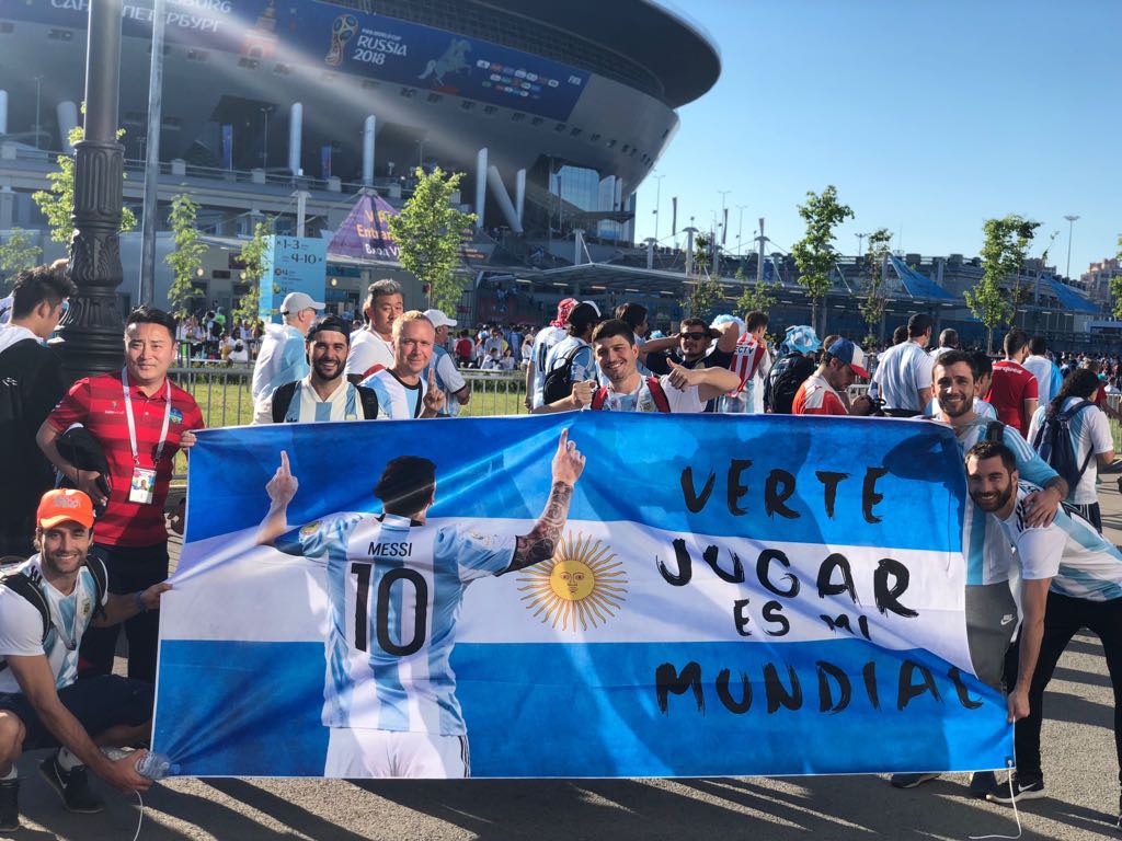 Faltan pocos minutos para el encuentro, pero el aliento regional ya se hace sentir en Rusia. Desde San Petersburgo, los zonales que pudieron viajar al Mundial hacen el aguante para la Selección, que afronta un partido clave: o sigue o se despide en primera ronda.