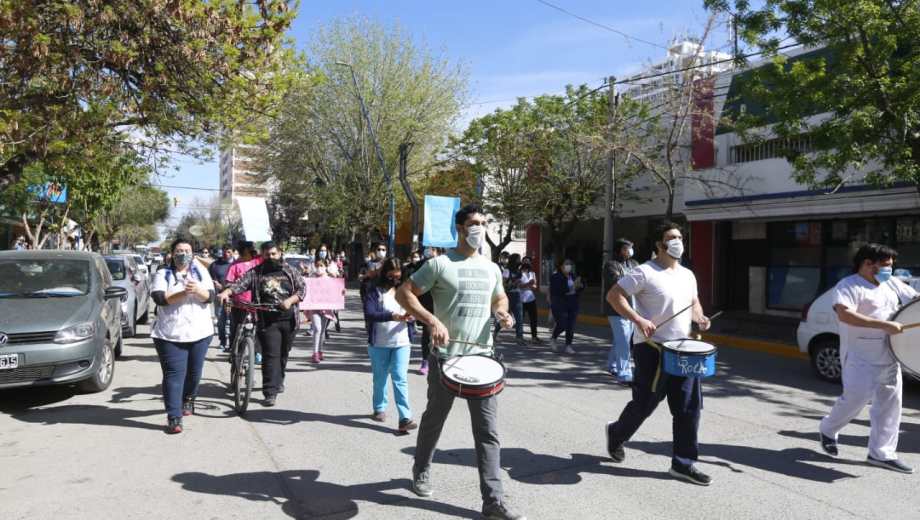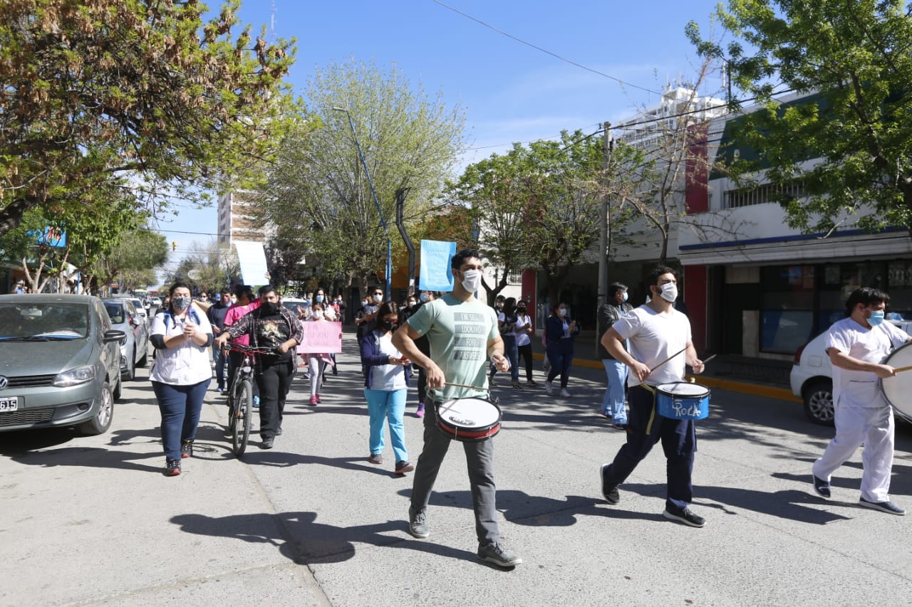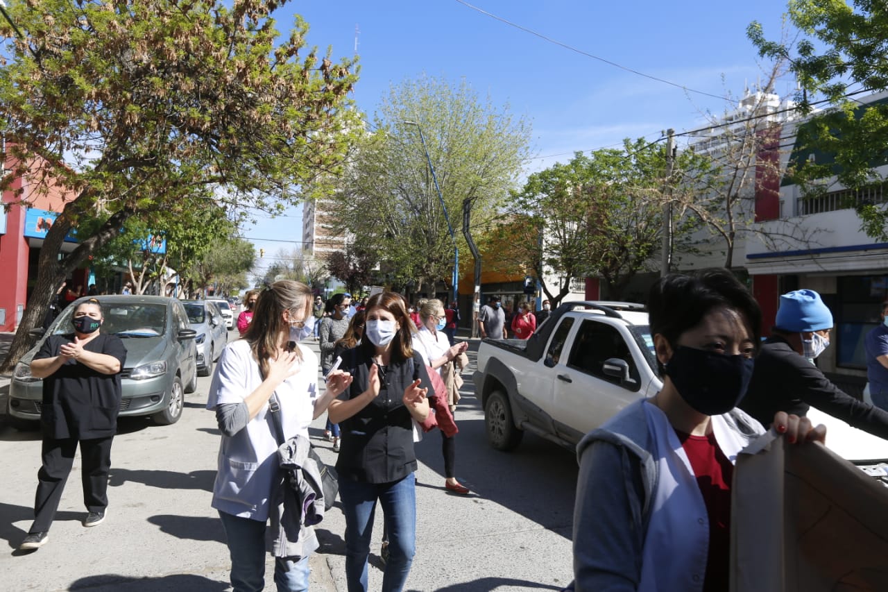 La protesta salió desde el hospital por avenida Roca y a esta hora de la mañana recorre la calle Tucumán. Están previsto que se reúnan alrededor del monumento a La Manzana.