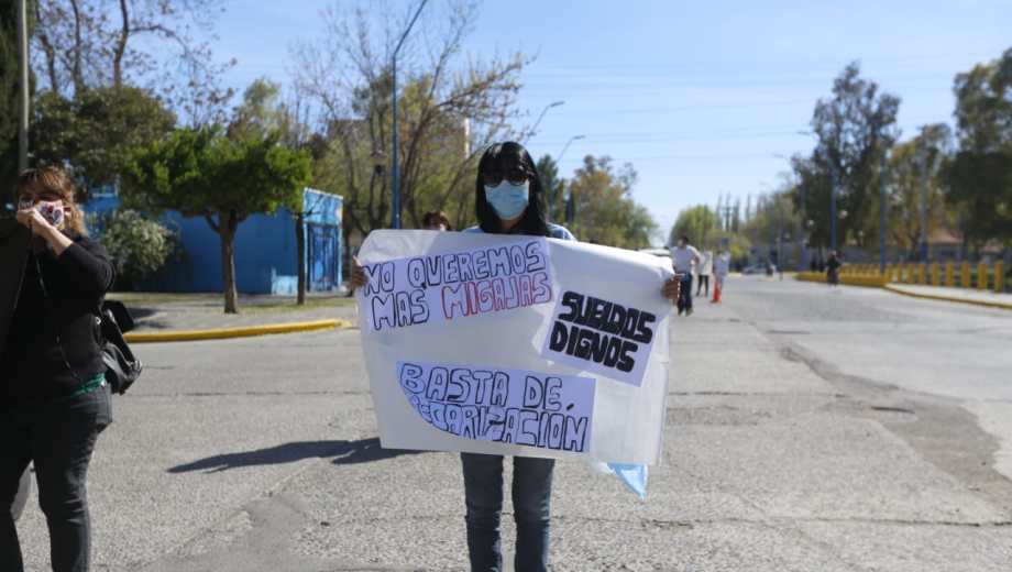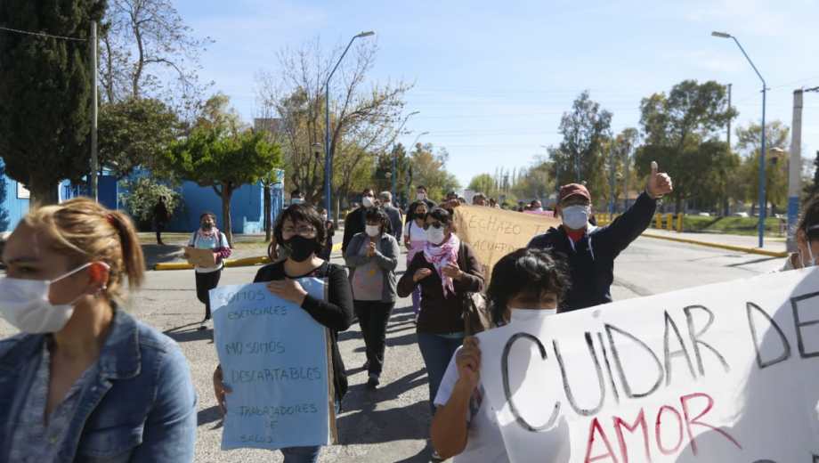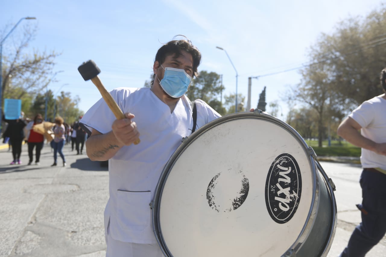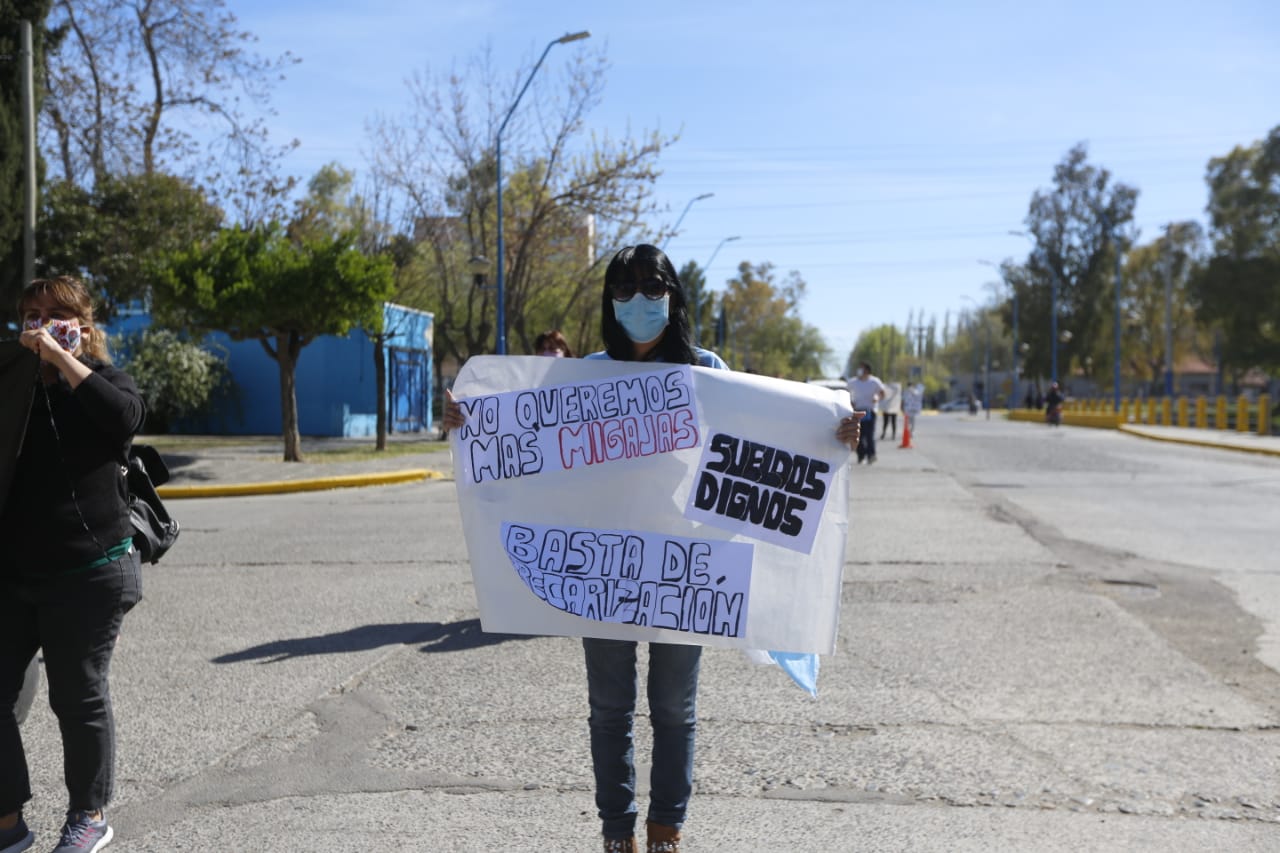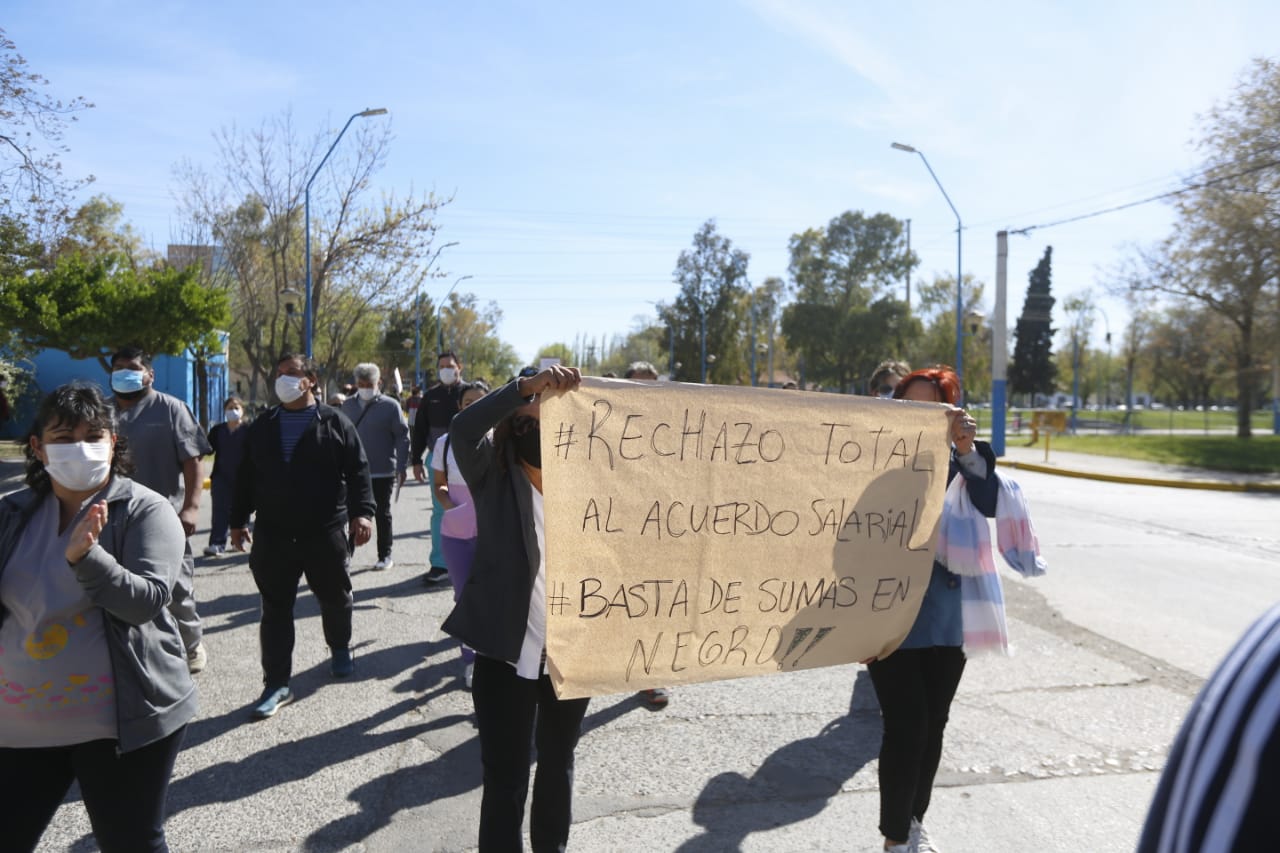 «Reclamo por un aumento salarial real y digno», rezaba una de las primeras pancartas que portaba una trabajadora. «No queremos más migajas. Basta de precarización. Sueldos dignos», era otro de los menajes que se podía observar en una extensa movilización donde se respetaron las medidas sanitarias y se resguardó la distancia social.