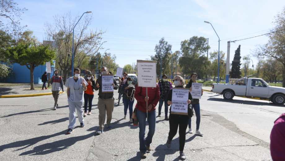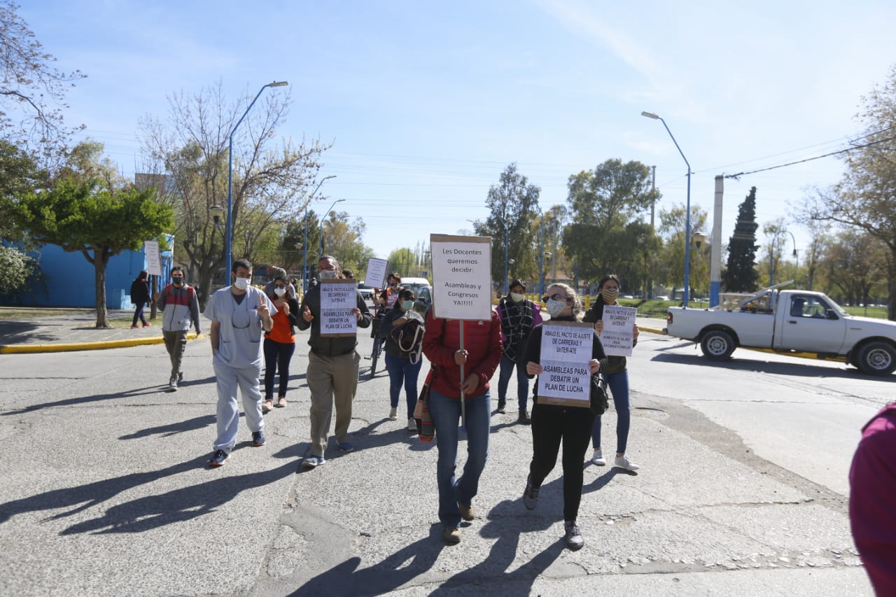 Tras una asamblea realizada en uno de los portones de acceso al predio de calle Gelonch y avenida Roca, los profesionales se encolumnaron en la protesta que tiene como principal objetivo lograr una reivindicación salarial.