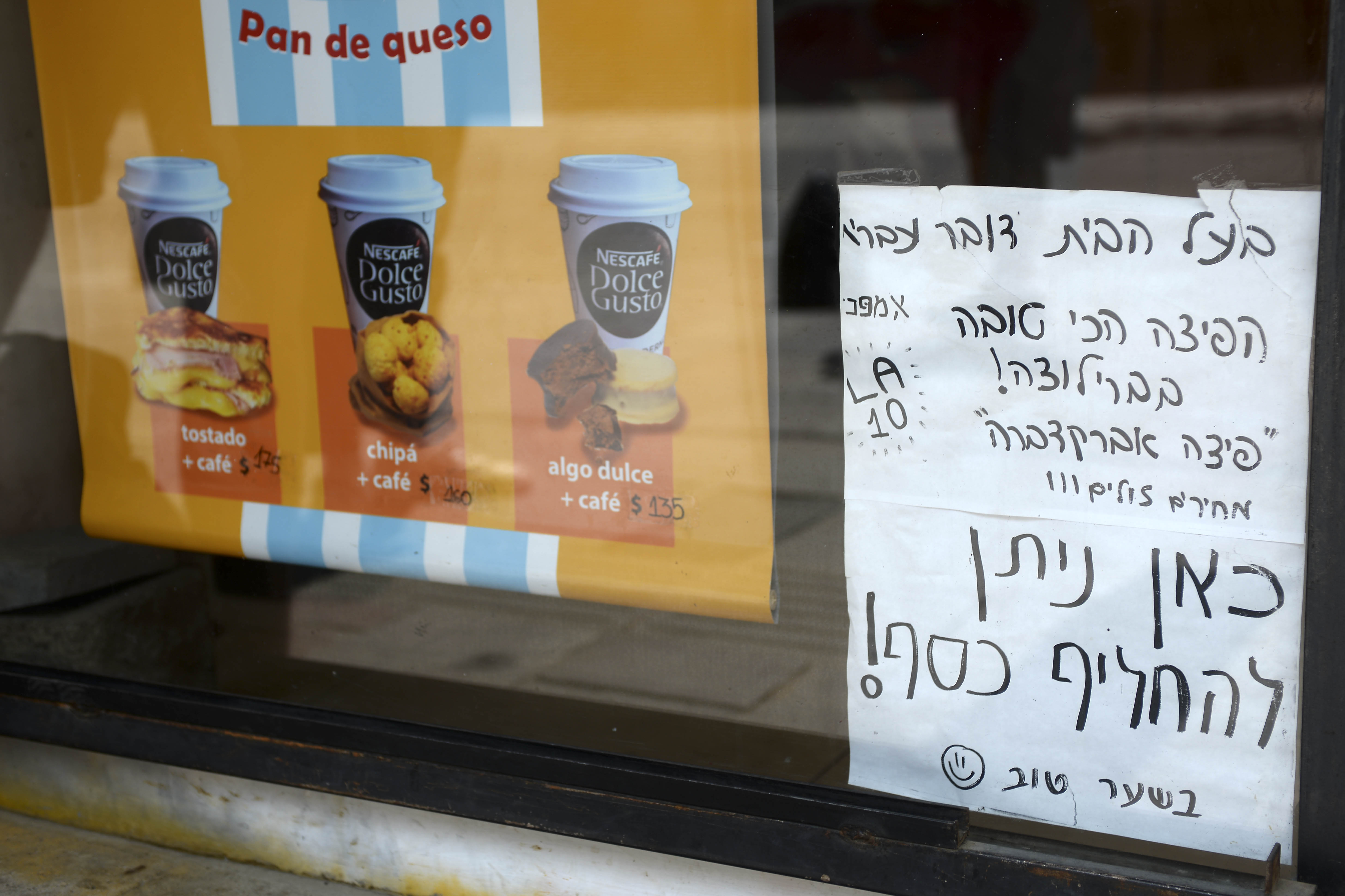 Los carteles en hebreo abundan en las vidrieras de algunos comercios de Bariloche. Hay locales de empanadas que ofrecen cartas en hebreo, al igual que las heladerías que exhiben sus gustos en esa lengua.