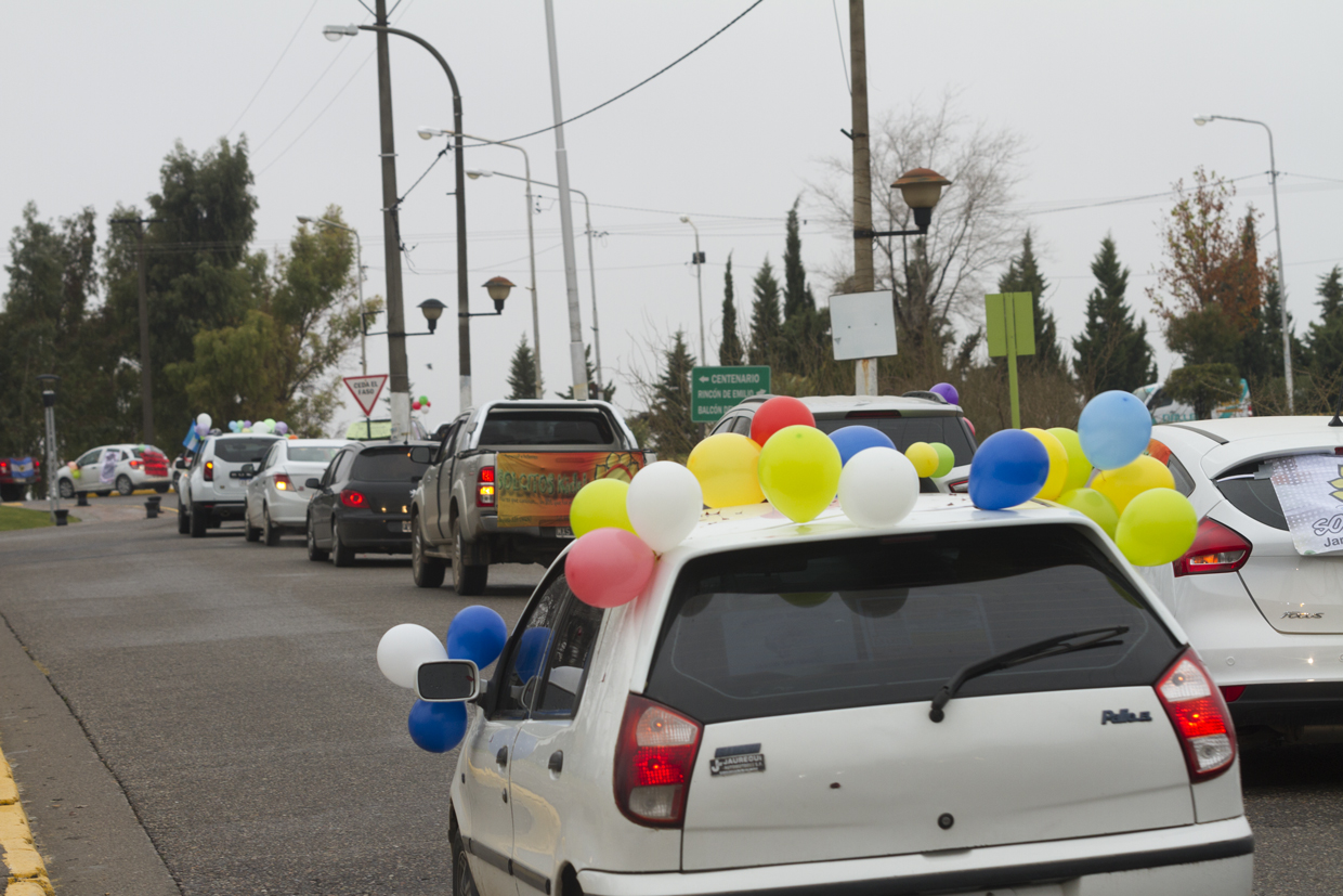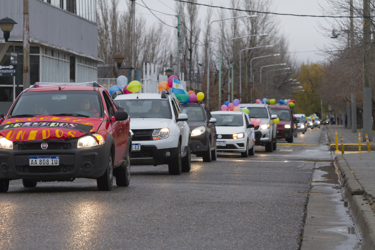 La concentración comenzó a las 10 a pocos metros del río Limay. Unos 30 vehículos adornados con globos, ornamentos y carteles recorrieron la Avenida Olascoaga hasta la Plaza de las Banderas.