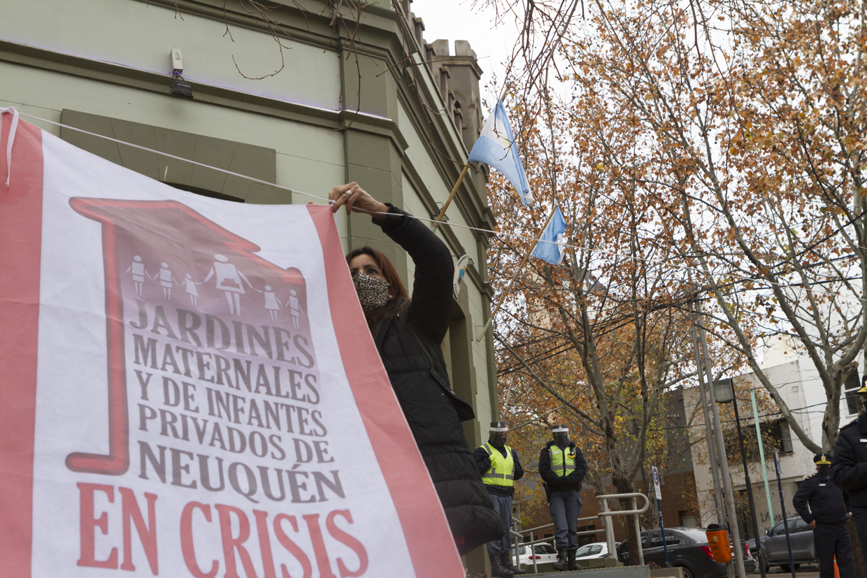 La ruidosa caravana de los jardines privados de Neuquén captó la atención de las personas que realizaban sus actividades en el centro de la capital neuquina. Incluso la del propio gobernador, Omar Gutiérrez.