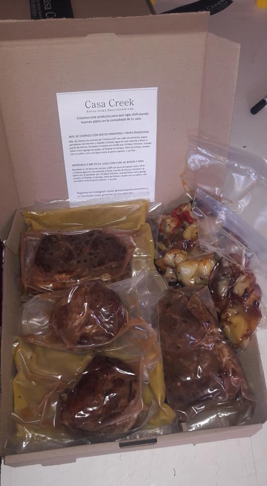 Casa Creek, de Viedma, que hacen gastronomía gourmet conservada al vacío, como osobuco con champignones y hongos de pino, papas y gremolata.