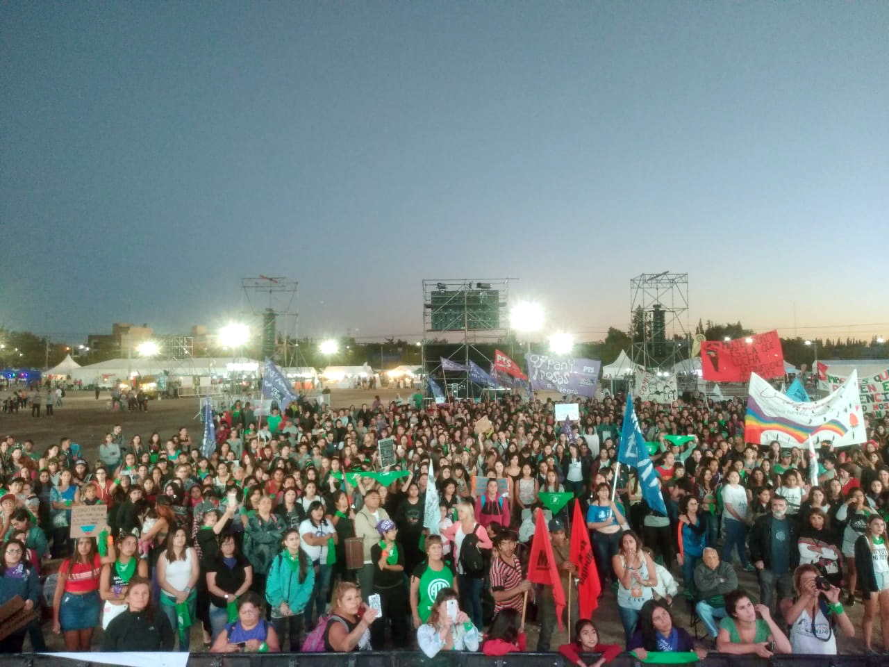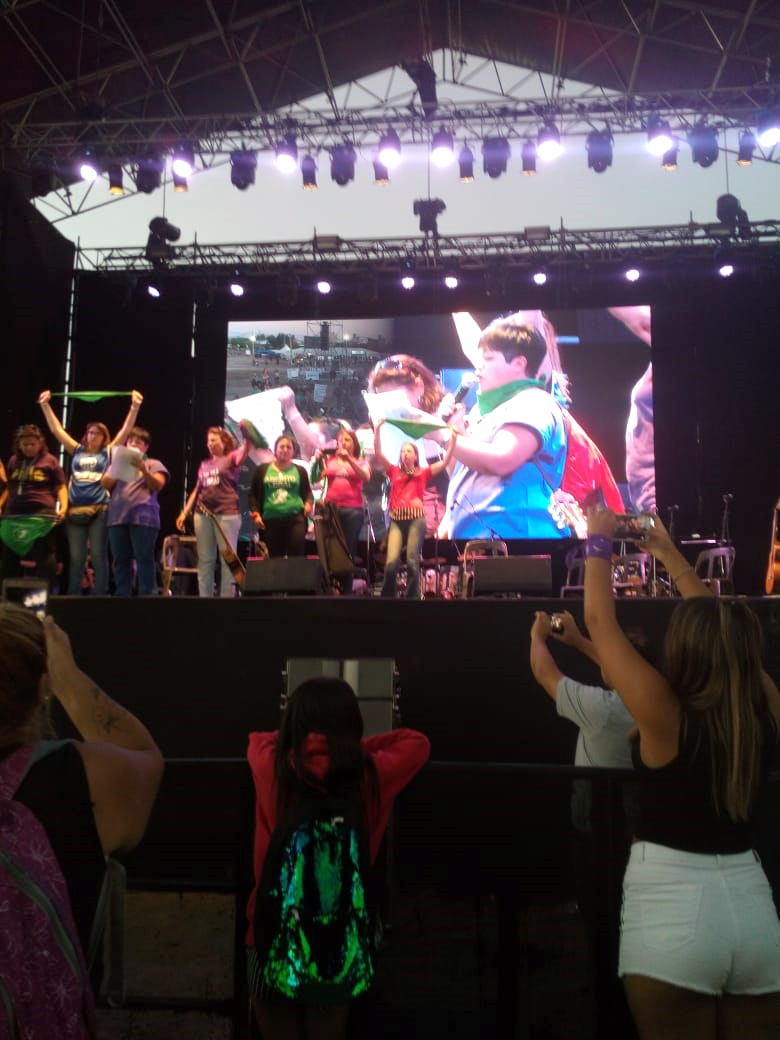 Palabras como «revolución feminista», «marea verde», y otras como «aborto legal» o «Educación Sexual Integral» resonaron fuerte en las paredes y en los edificios de Cipolletti, amplificados por los parlantes que luego darían sonido a las canciones de Lali Espósito, también repudiada por su adhesión al proyecto de aborto legal y gratuito.
