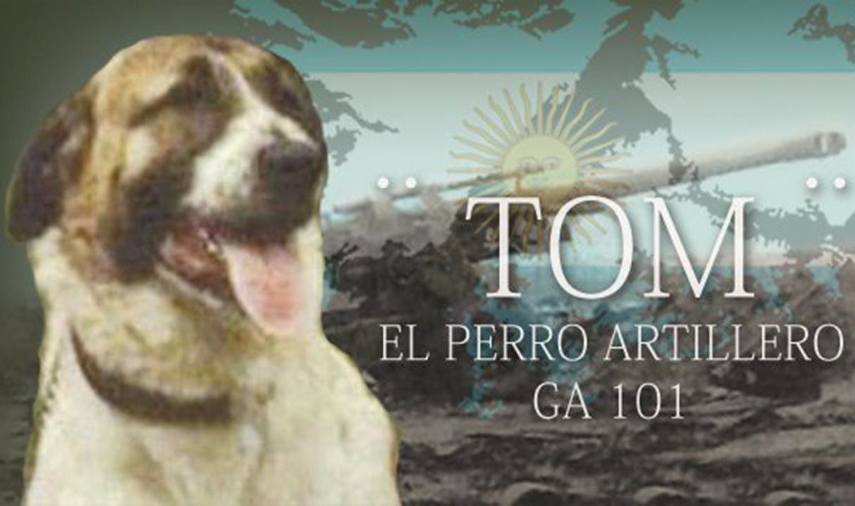 En Malvinas, Tom se comportó como un bravo artillero. Cuando tirábamos con la máxima cadencia de fuego hacia los británicos, él se paraba delante del cañón como el mejor de los combatientes; siempre ladraba y jugaba con aquél que estaba bajoneado en los momentos de calma para darle ánimo; cuando había “alerta roja de bombardeo naval” era el primero en salir del refugio para buscar a los más alejados y el último en entrar a cubrirse; y muchas veces su instinto canino presintió los bombardeos aéreos antes que se gritara la alarma, lo cual manifestaba con ladridos que ya conocíamos. Compartía con nosotros la comida y los soldados le fabricaron un abrigo con los gorros de lana y bufandas.