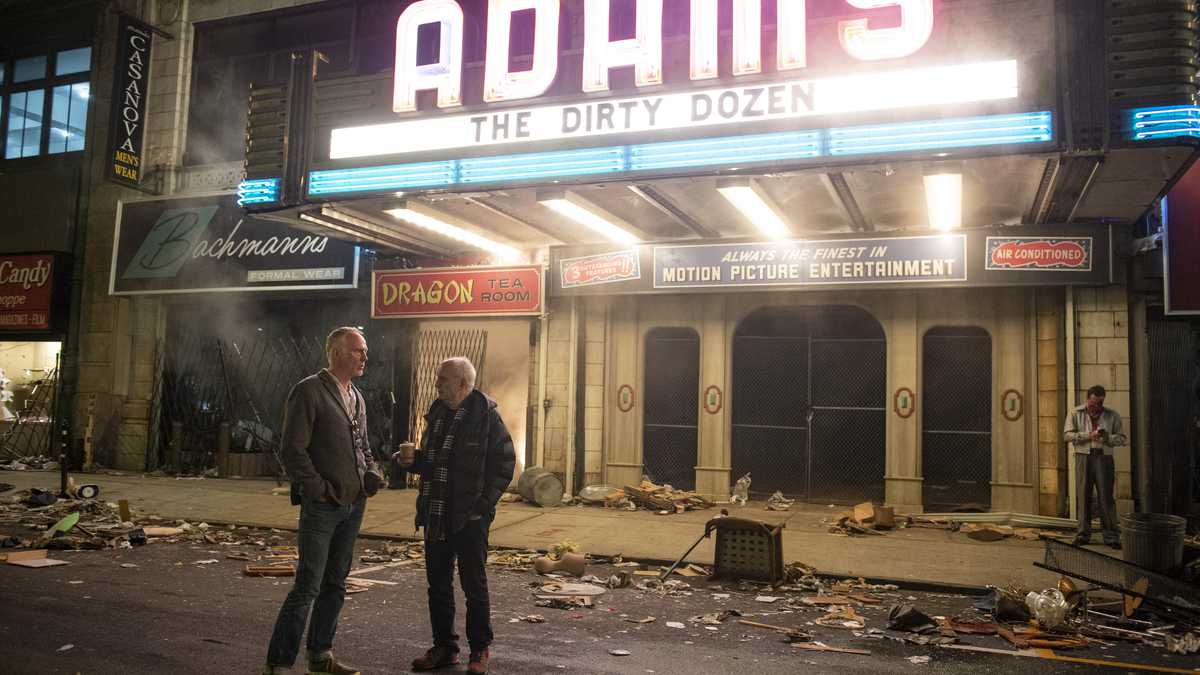 El director Alan Taylor y David Chase, creador y productor de «Los Soprano» y «Los santos del la mafia, frente a un sucio cine abandonado de Newark, adaptado a la estética del filme.