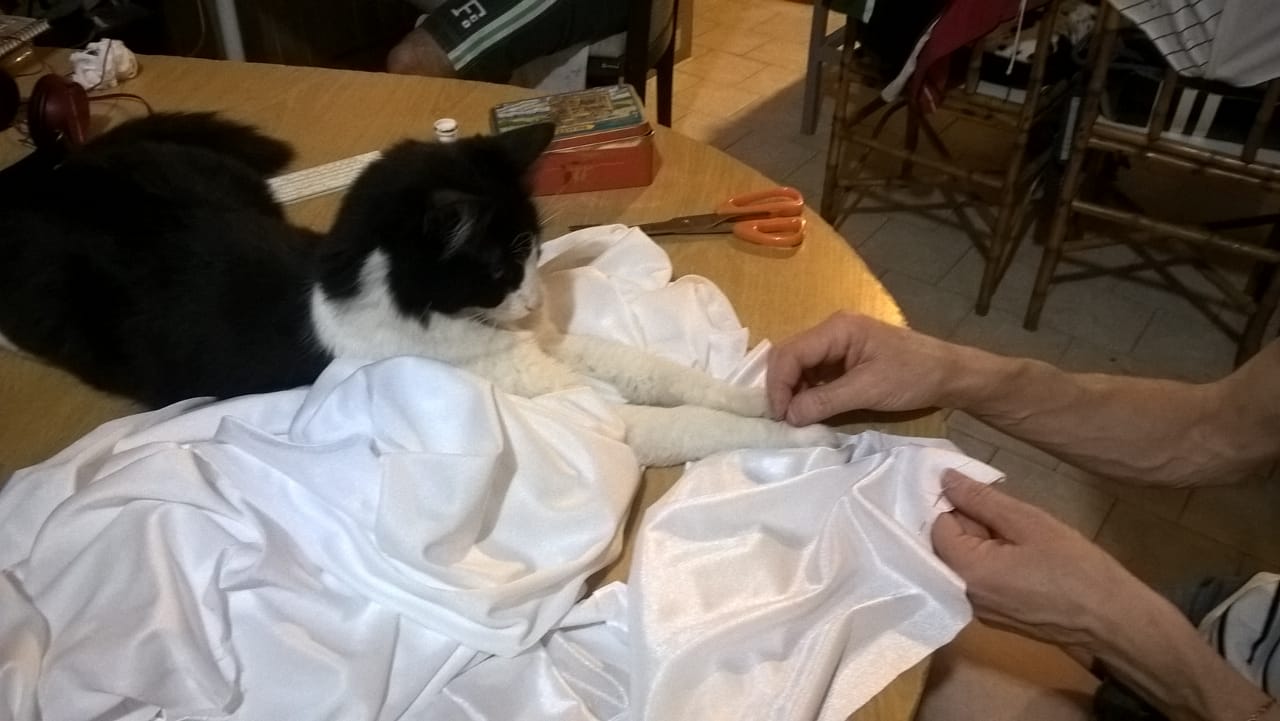 Mía es la reina de la casa y ayuda con las costuras.