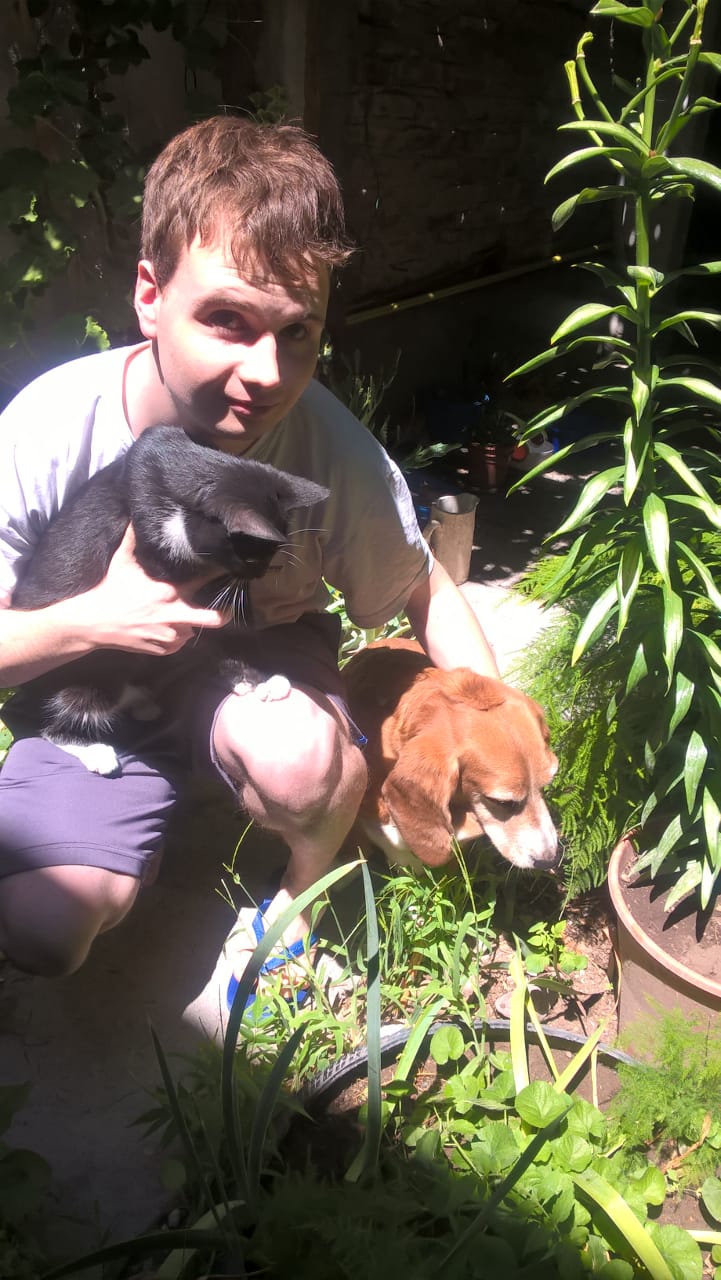 El joven roquense además de estudiar, se da un tiempo para estar con sus mascotas.