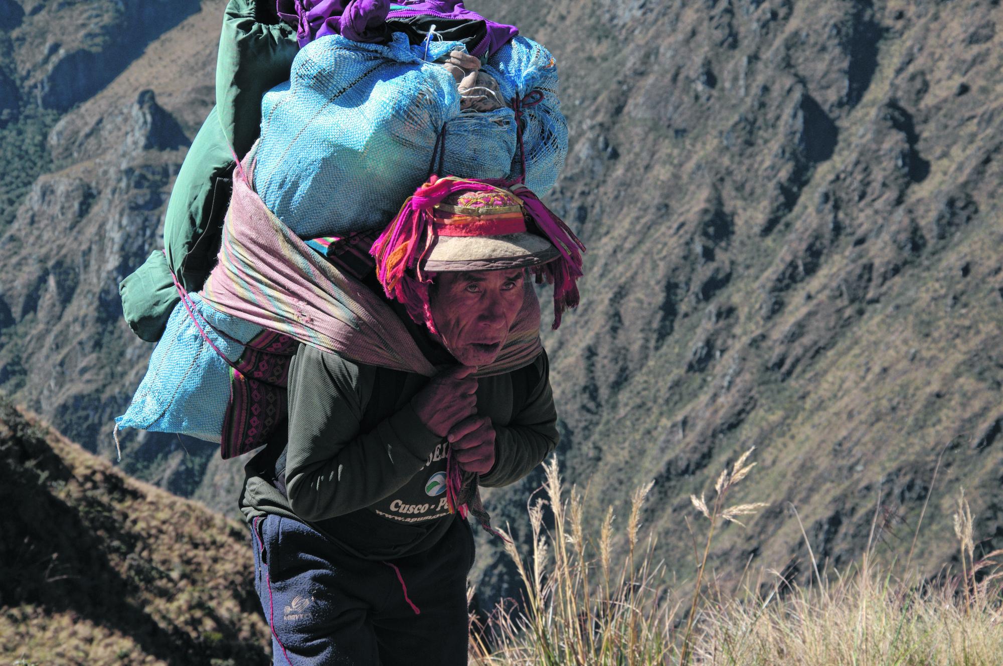 Son peruanos que trabajan para la empresa local que organiza el tour. Se llevan el gran mérito: transportan gran parte del equipo utilizado en los cuatro días de la travesía. Carpas, utensillos, colchonetas, comida y hasta 6 kg de indumentaria de cada caminante, un total de 30 kilos sobre sus espaldas. No faltó en nuestro grupo la admiración y los cuestionamientos éticos y morales por su sacrificio.
