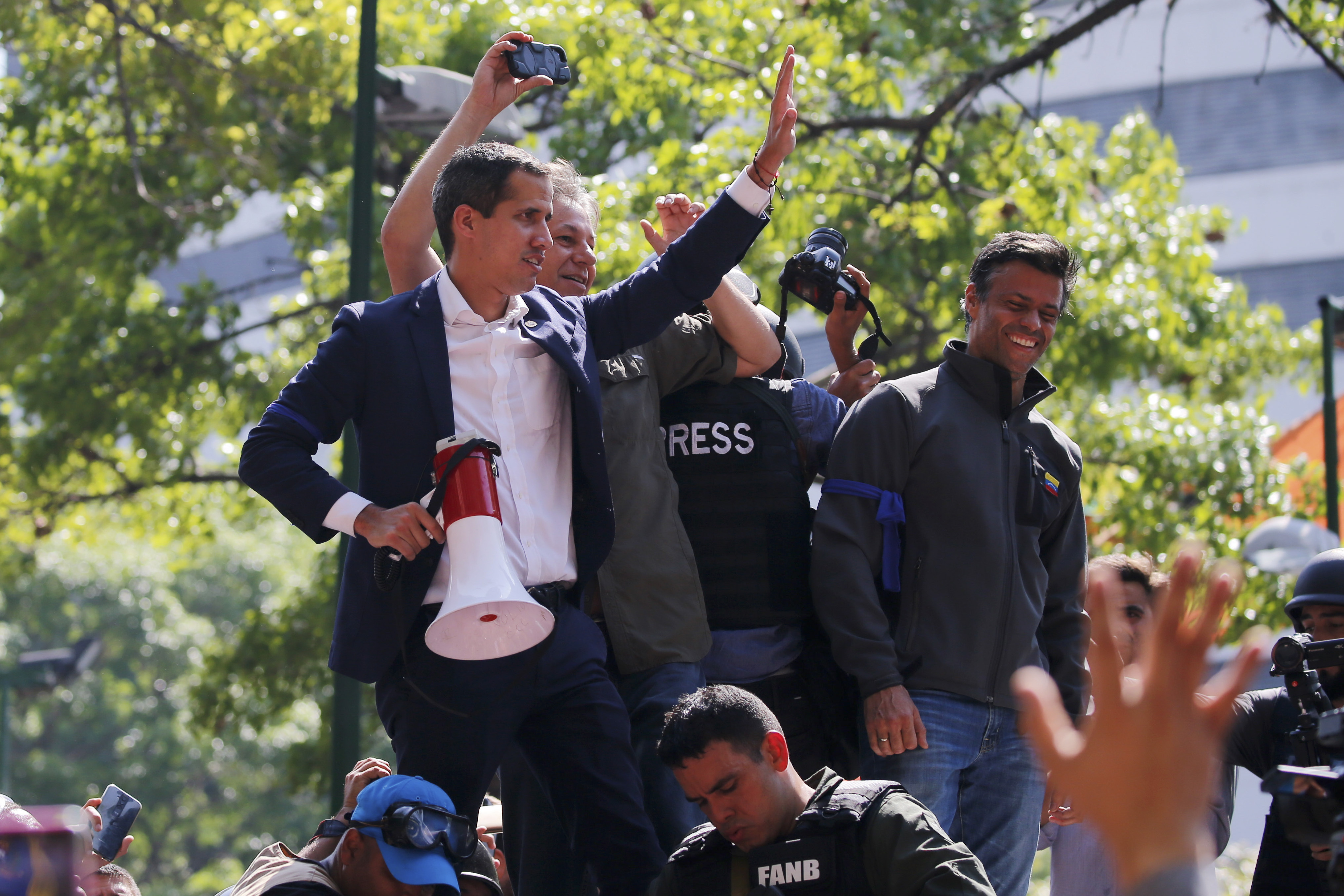 López líder del partido Voluntad Popular, indultado por Guaidó, se encuentra en la base área de La Carlota, en Caracas, junto al presidente interino designado en enero pasado por el Parlamento de ese país.