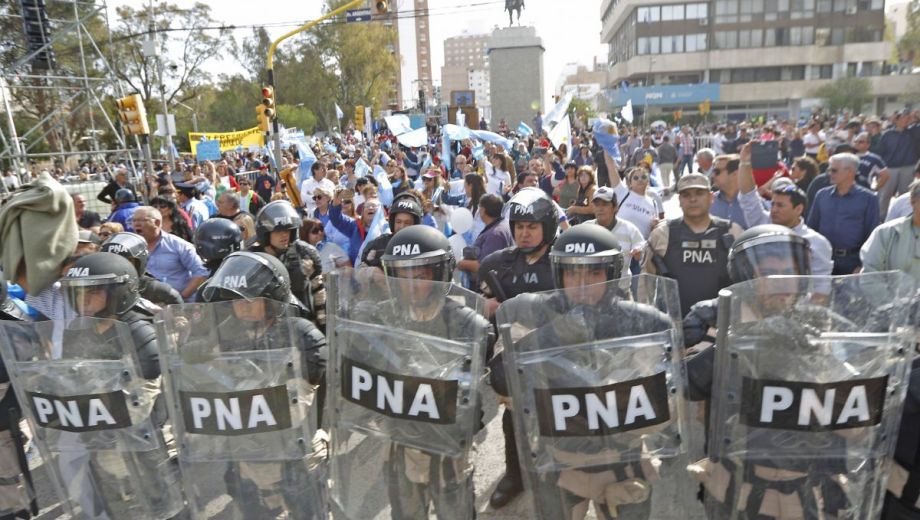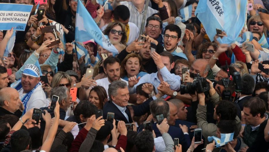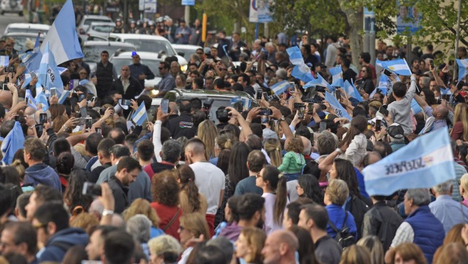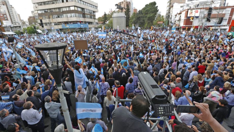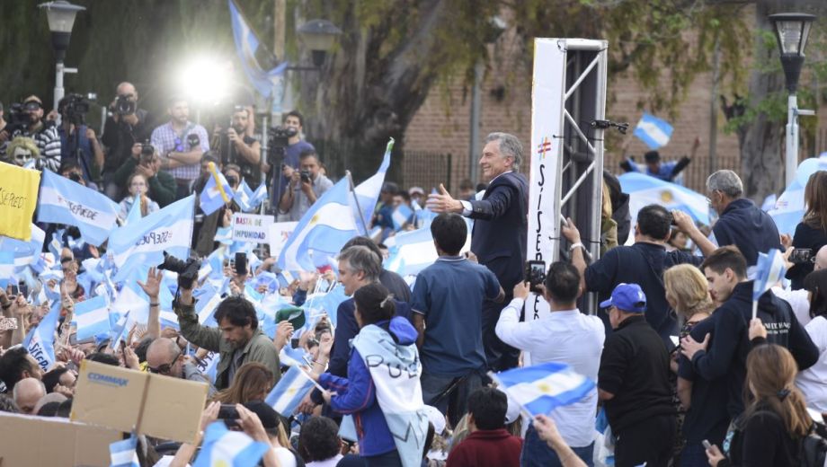 El presidente habló durante poco más de 17 minutos. La mayoría de los simpatizantes se concentraron sobre la plazoleta en el monumento a San Martín. Foto: Juan Thomes