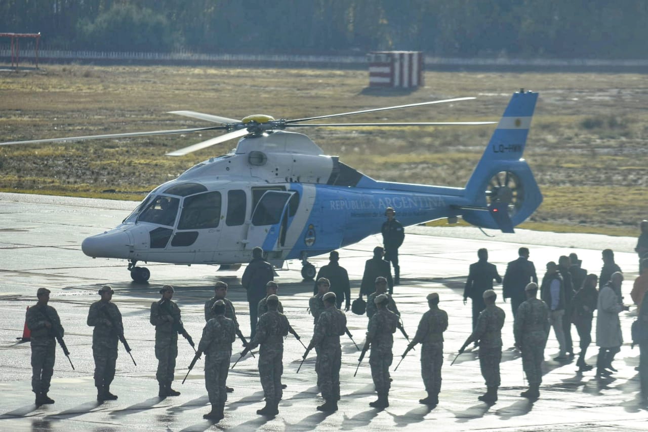 El arribo del presidente al aeropuerto Presidente Perón fue tranquilo. Aunque ATE-CTA, Camioneros y Municipales emitieron un rechazo conjunto a la visita del mandatario, esta vez no se organizaron manifestaciones en la terminal aeroportuaria, que estaba custodiada por un operativo policial y de gendarmes.