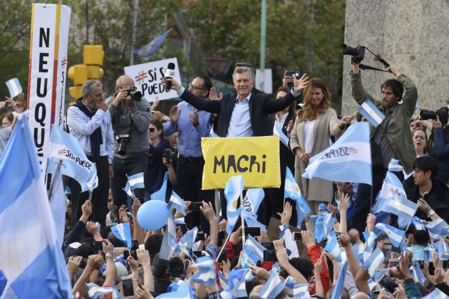 El mandatario nacional llegó al monumento a San Martín junto a su pareja, Juliana Awada, alrededor de las 18:30, una hora más tarde de lo convocado. En el palco se rodeó de los candidatos locales y de Río Negro como Horacio Quiroga, Francisco Sánchez, Valeria Todero y Sergio Wisky, aunque faltó Lucila Crexell, la extrapartidaria emepenista que Juntos por el Cambio incluyó en su lista para estos comicios.