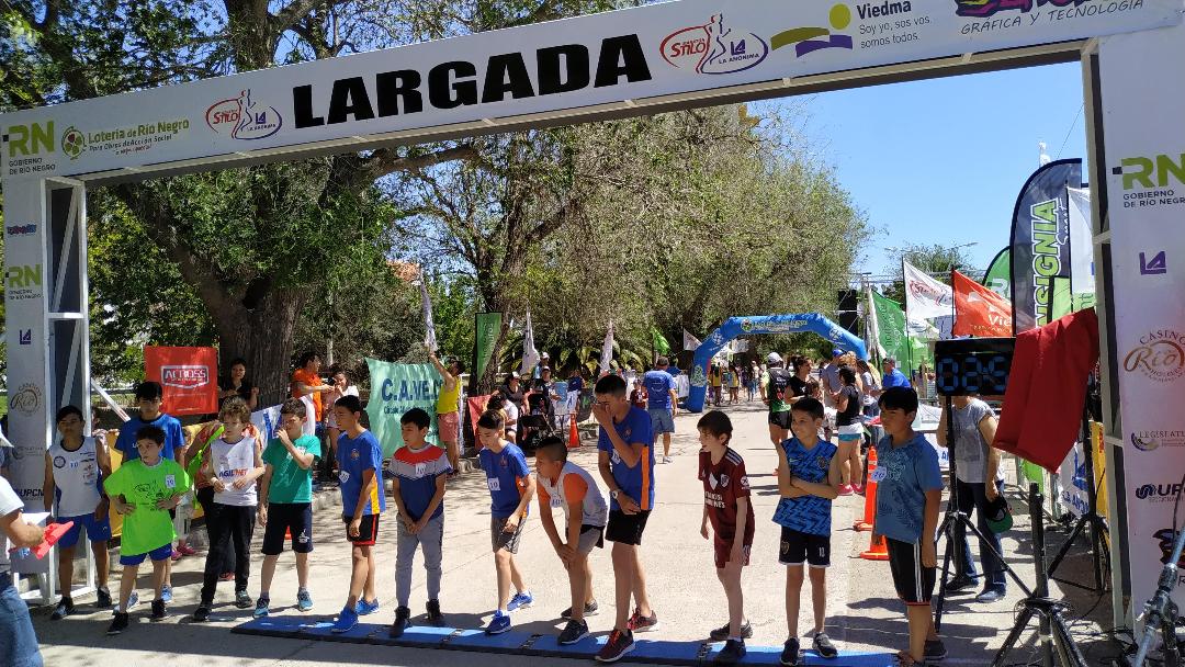 Unos 250 niños y niñas inundaron a media mañana la costanera viedmense durante las competencias promocionales de la Maratón Stilo en su 20° edición.