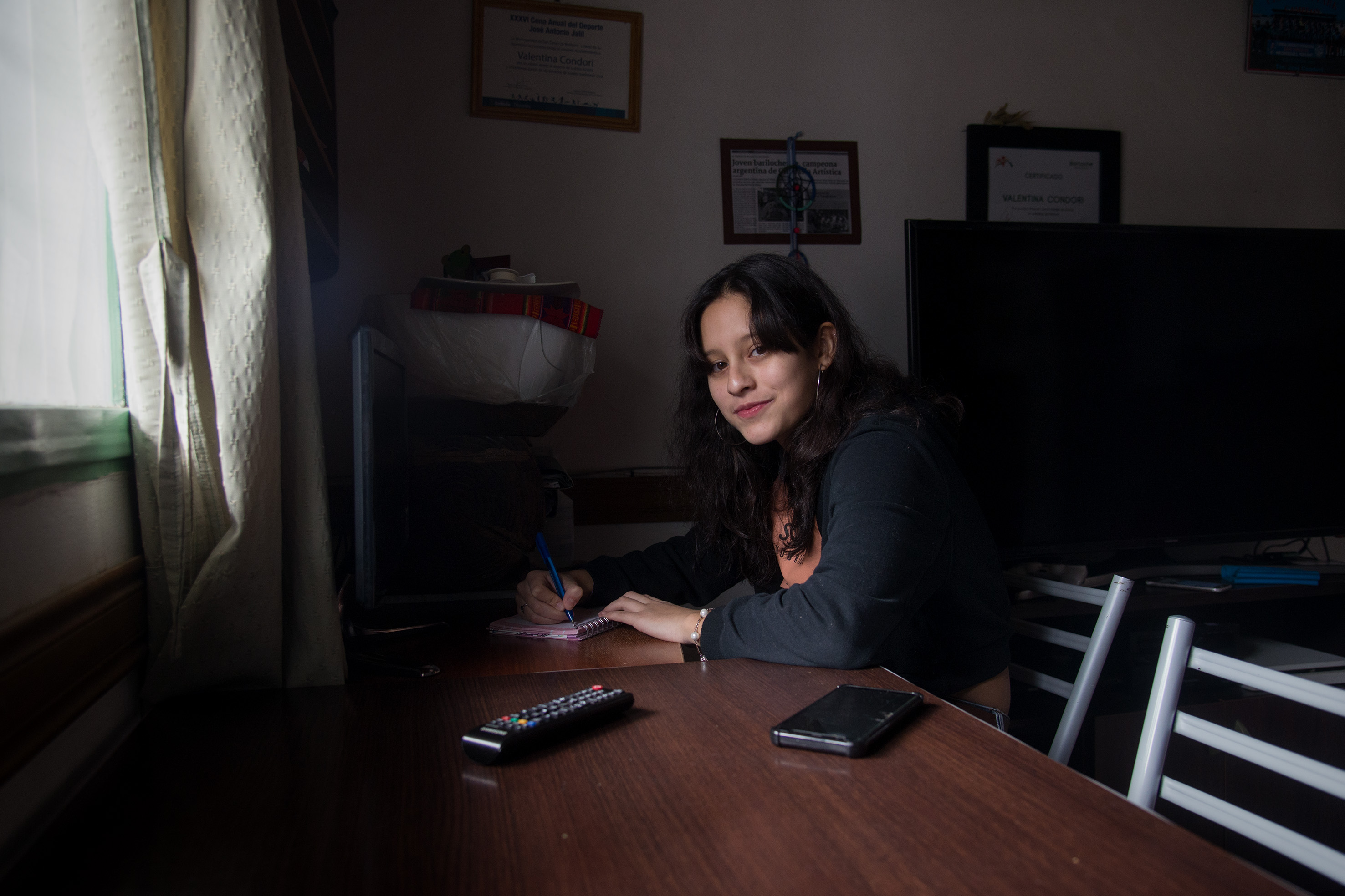 La rutina de Valentina Condori, del colegio 123, es diferente. Aprovecha las mañanas para practicar gimnasia artística y por las tardes se dedica a las tareas de la escuela. Le gusta dibujar, leer y mirar series. Lo que más extraña, aclaró, es la vida social.