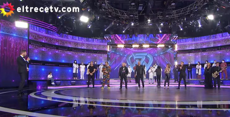“Señores, fuerte el aplauso para ellos, fuerte el aplauso para los músicos y fuerte el aplauso para los médicos que han venido en representación de todo el personal de salud de la República Argentina”, concluyó Tinelli, al presentar a distinguidas figuras de la música nacional.