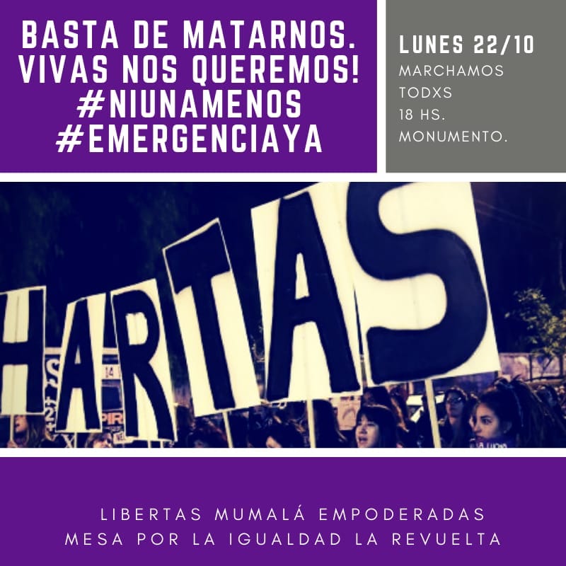 La concentración será en el Monumento a San Martín, desde las 18, con la participación de Libertas, Mumalá, Empoderadas, Mesa por la igualdad y La Revuelta.