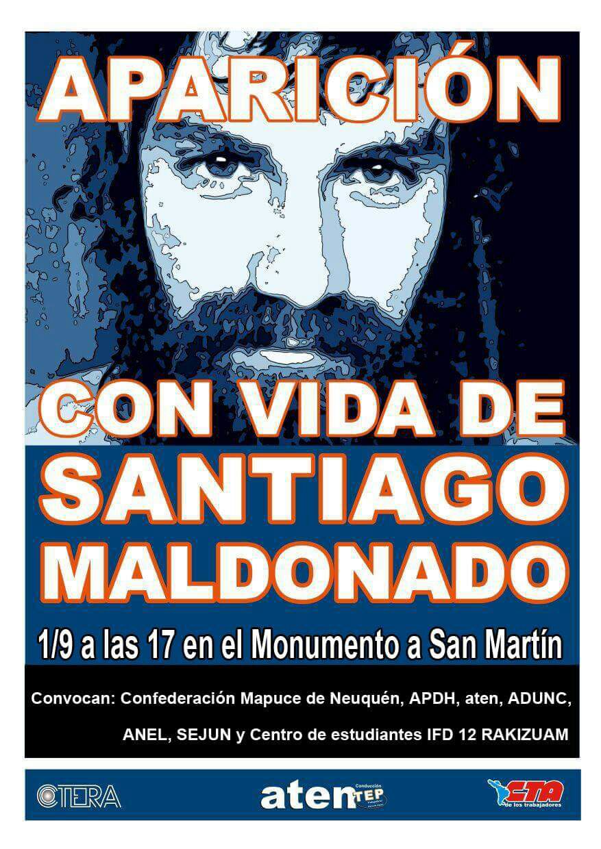 El viernes 1 de septiembre habrá una marcha nacional por la aparición con vida de Santiago Maldonado, y en Neuquén capital la convocatoria se realizó en el monumento San Martín a las 17.