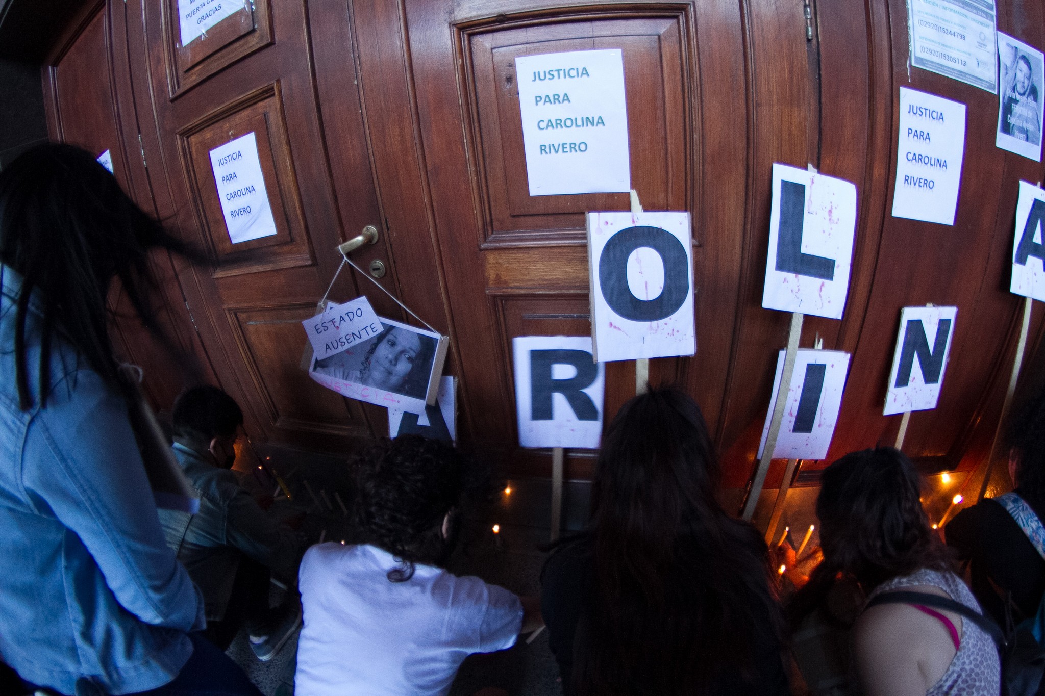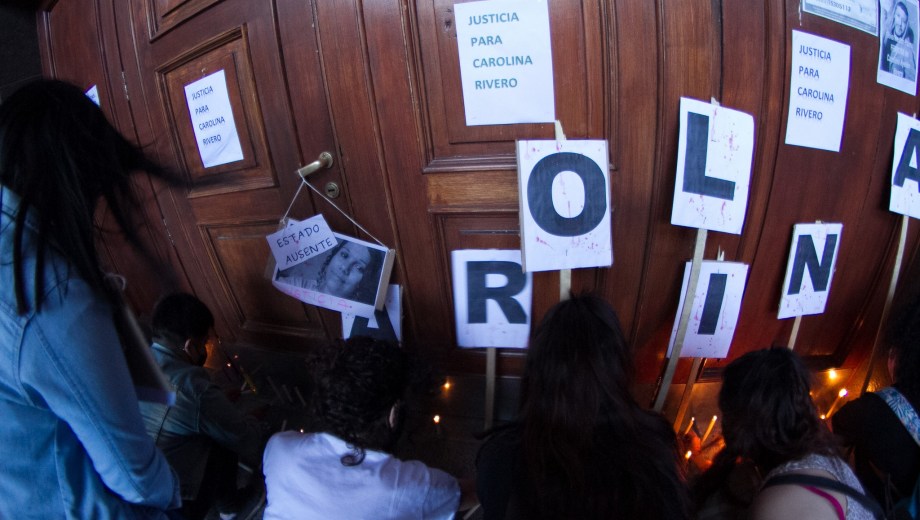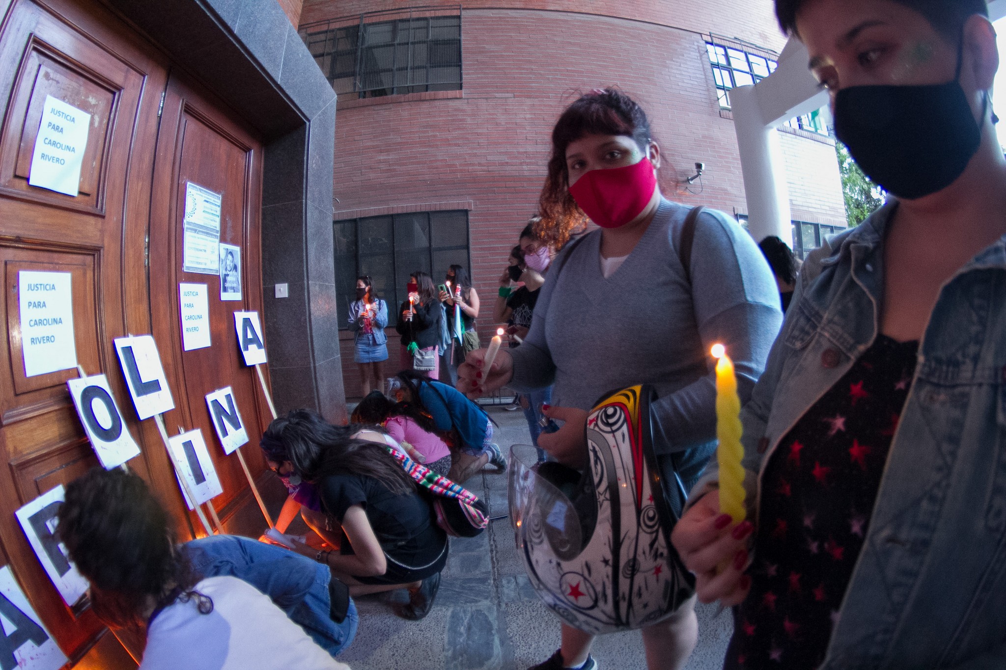 Diversas agrupaciones feministas se reunieron frente a la Justicia con pancartas con el nombre de Carolina Rivero, la joven asesinada por su pareja. También hubo distintas intervenciones prendieron velas en la puerta del edificio central del Poder Judicial de Río Negro.