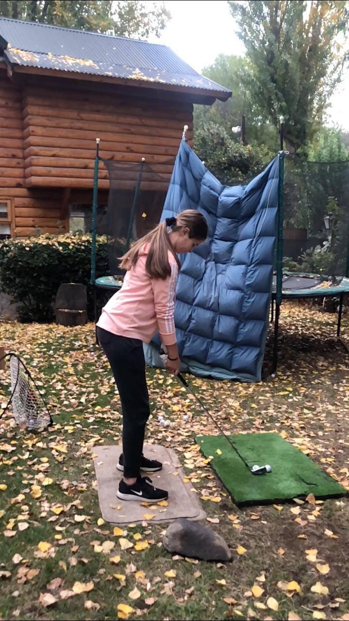La golfista no dejó de entrenarse durante la cuarentena, primero en su casa y, en las últimas, semanas de nuevo en actividad.
