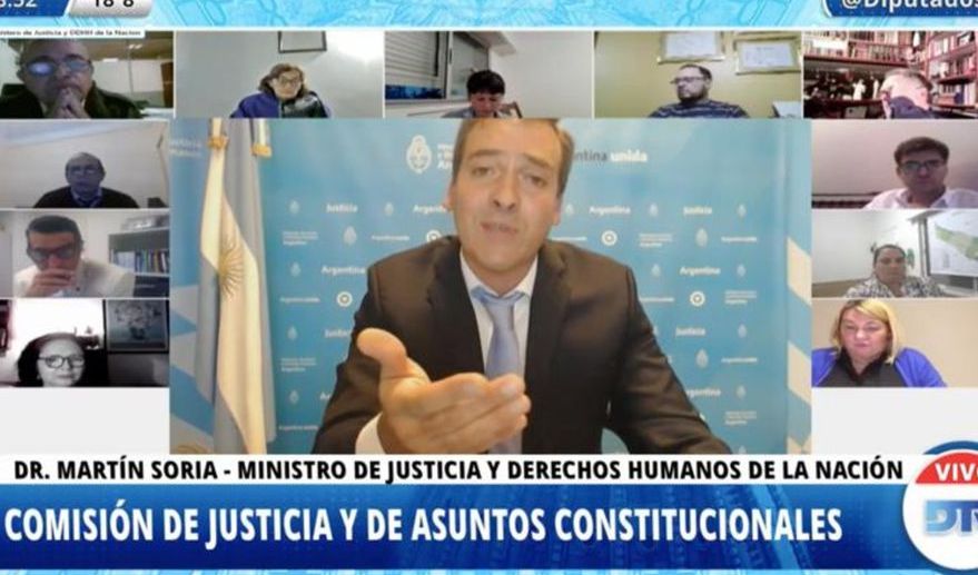 Al hablar ante un plenario de las comisiones de Justicia y de Asuntos Constitucionales de la Cámara de Diputados, Soria dijo que aprobar esa iniciativa «es fundamental para el restablecimiento del Estado de Derecho, que tanto daño ha sufrido en los últimos años». Soria expuso ante esas comisiones, que conducen Rodolfo Tahilade y Hernán Pérez Araujo, respectivamente, donde no estuvo el bloque de Juntos por el Cambio, que rechaza el proyecto votado por el Senado Nacional y que el domingo por la noche anticipó su concretada ausencia al zoom.