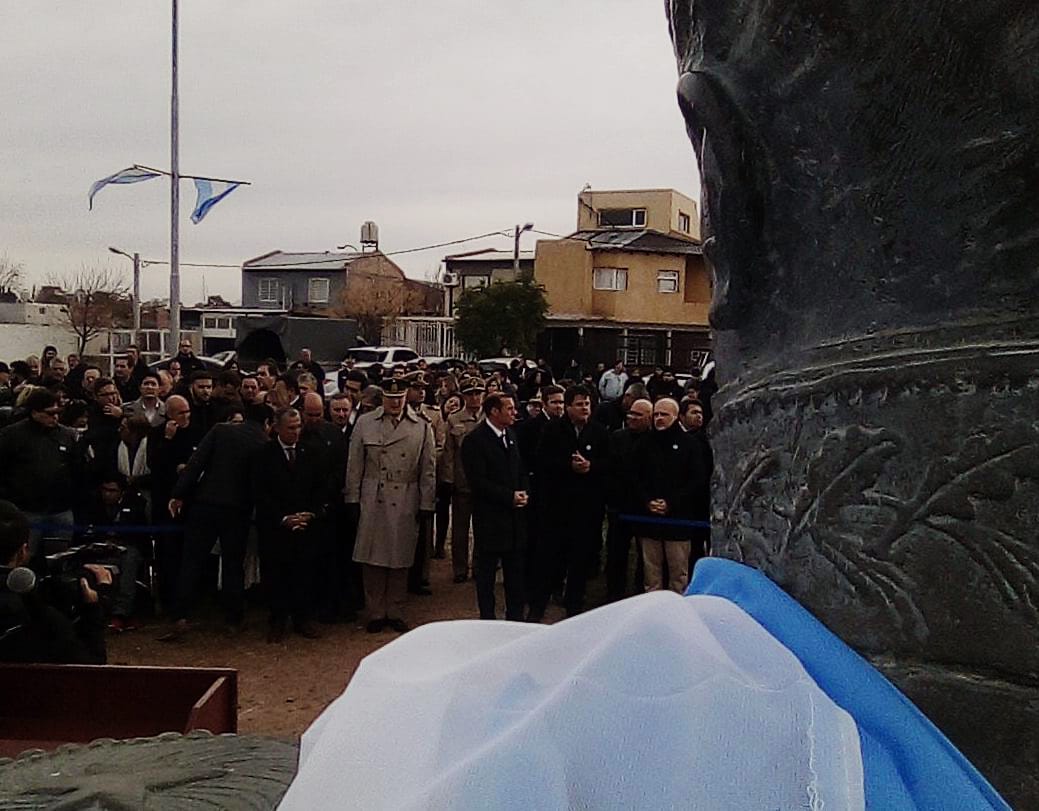 Allí, funcionarios provinciales y municipales entonaron las estrofas del himno nacional, izaron la bandera y recordaron con un minuto de silencio al creador de la bandera nacional.