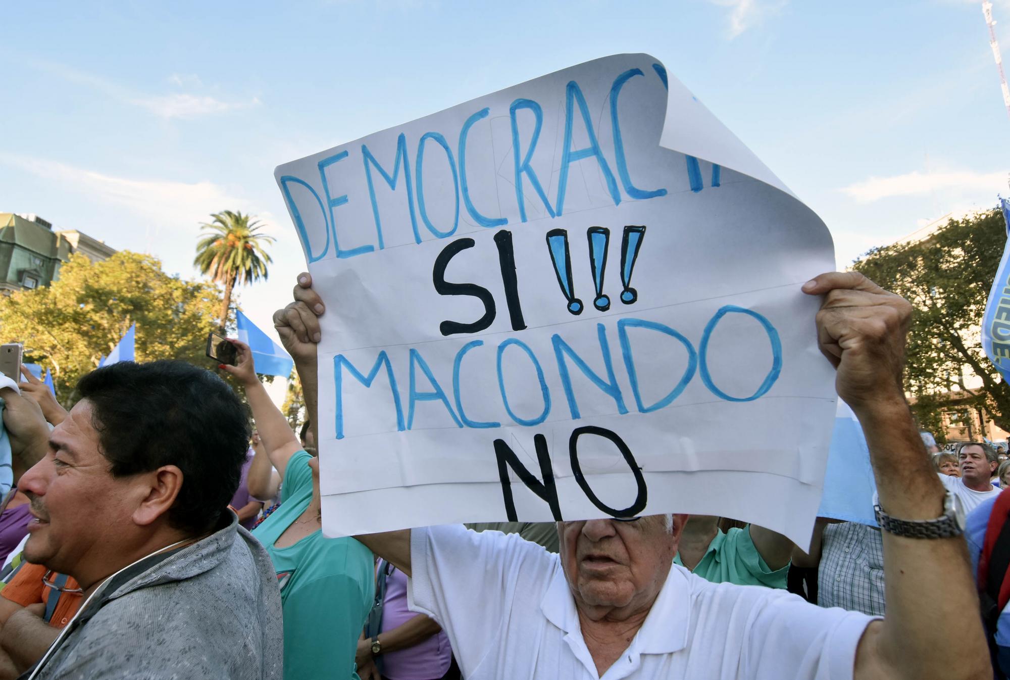 La denominada “Marcha por la democracia” fue convocada mediante la redes sociales en apoyo al gobierno de Cambiemos y a la gobernadora bonaerense, María Eugenia Vidal, días después de movilizaciones de docentes, trabajadores de la CTA y organizaciones sociales en contra de Macri, y antes del paro general del 6 de abril anunciado por la CGT.