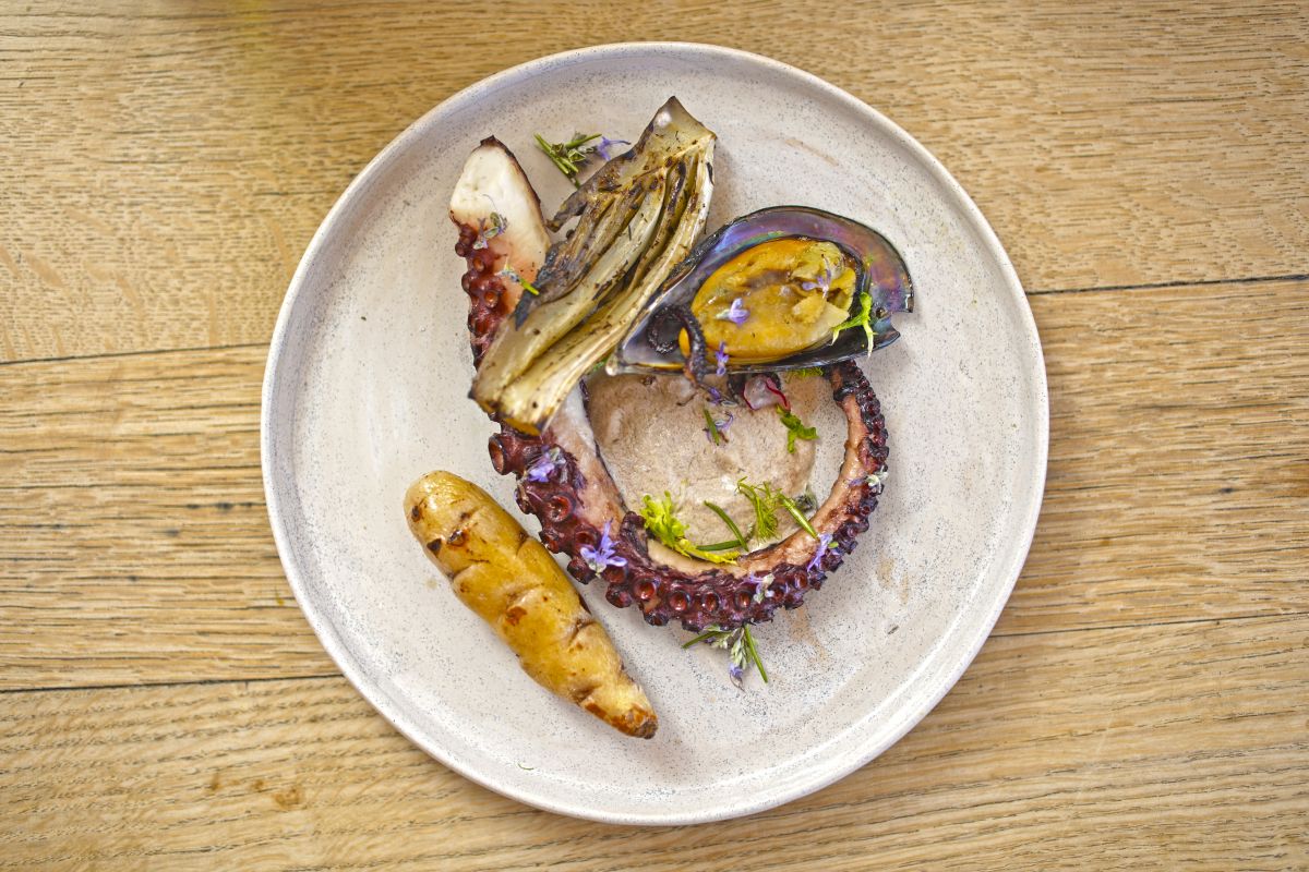 - El plato que más me han festejado hasta ahora es uno que hago con pulpo confitado en aceite de oliva de Neuquén, bruma de vieiras, papel de manzanas, naranja al vivo y flores de coliflor y romero.
