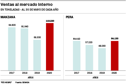 Mayo mostró nuevo récord de ventas de peras y manzanas al mercado interno
