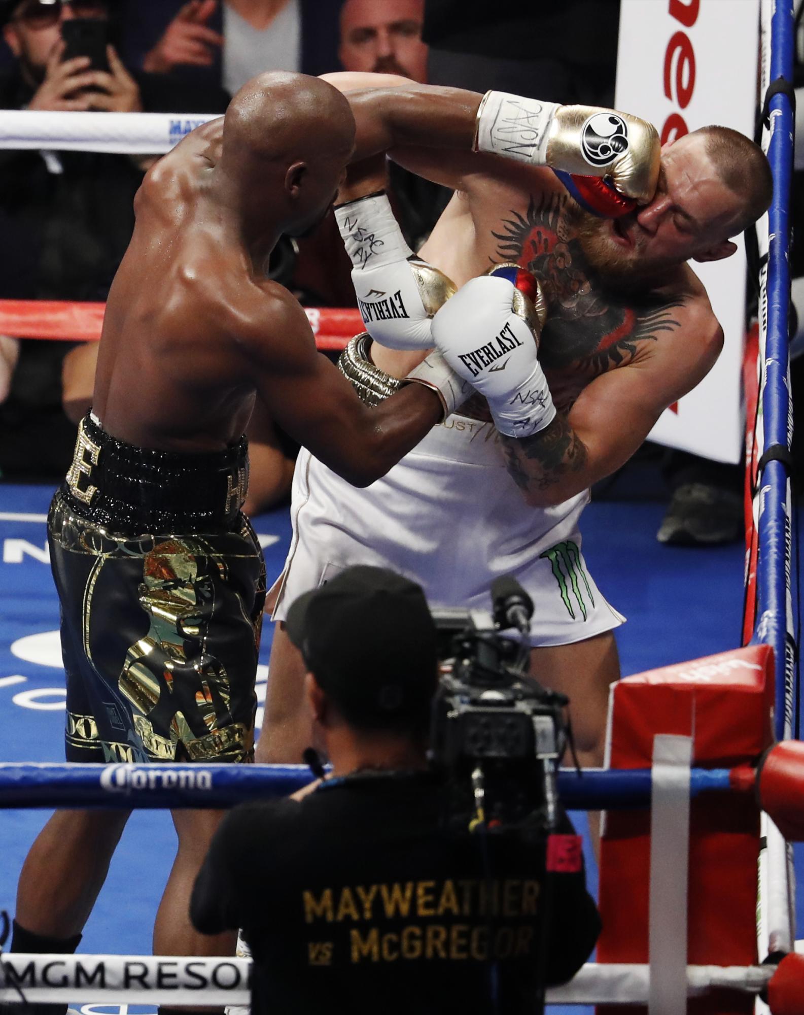 McGregor peleó sorpresivamente bien al comienzo. Tras asestar algunos puñetazos en los primeros tres capítulos, se quedó sin fuerza y se convirtió en presa fácil de Mayweather.