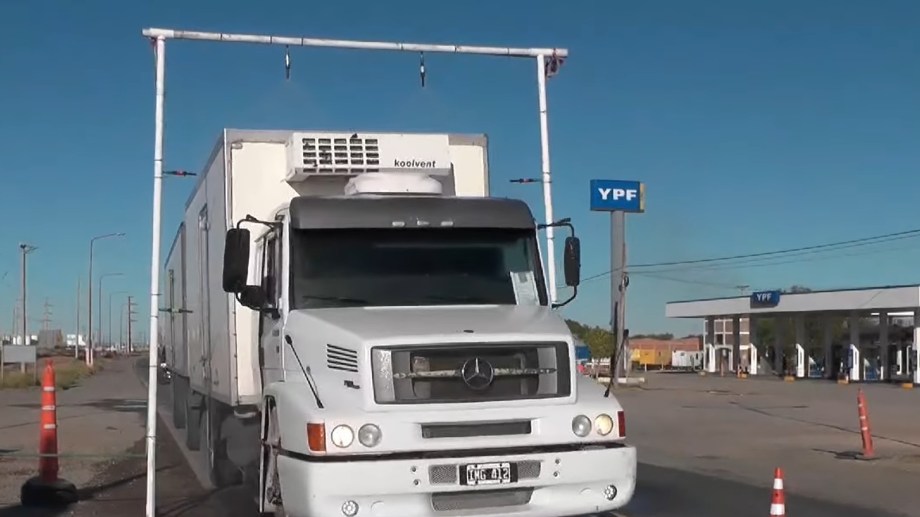 Los diferentes transportes de cargas, serán detenidos en los puestos de control, donde se le realizara la desinfección del vehículo en su totalidad. (el chofer en tránsito no baja del Vehículo) Llega descarga y retorna a destino.