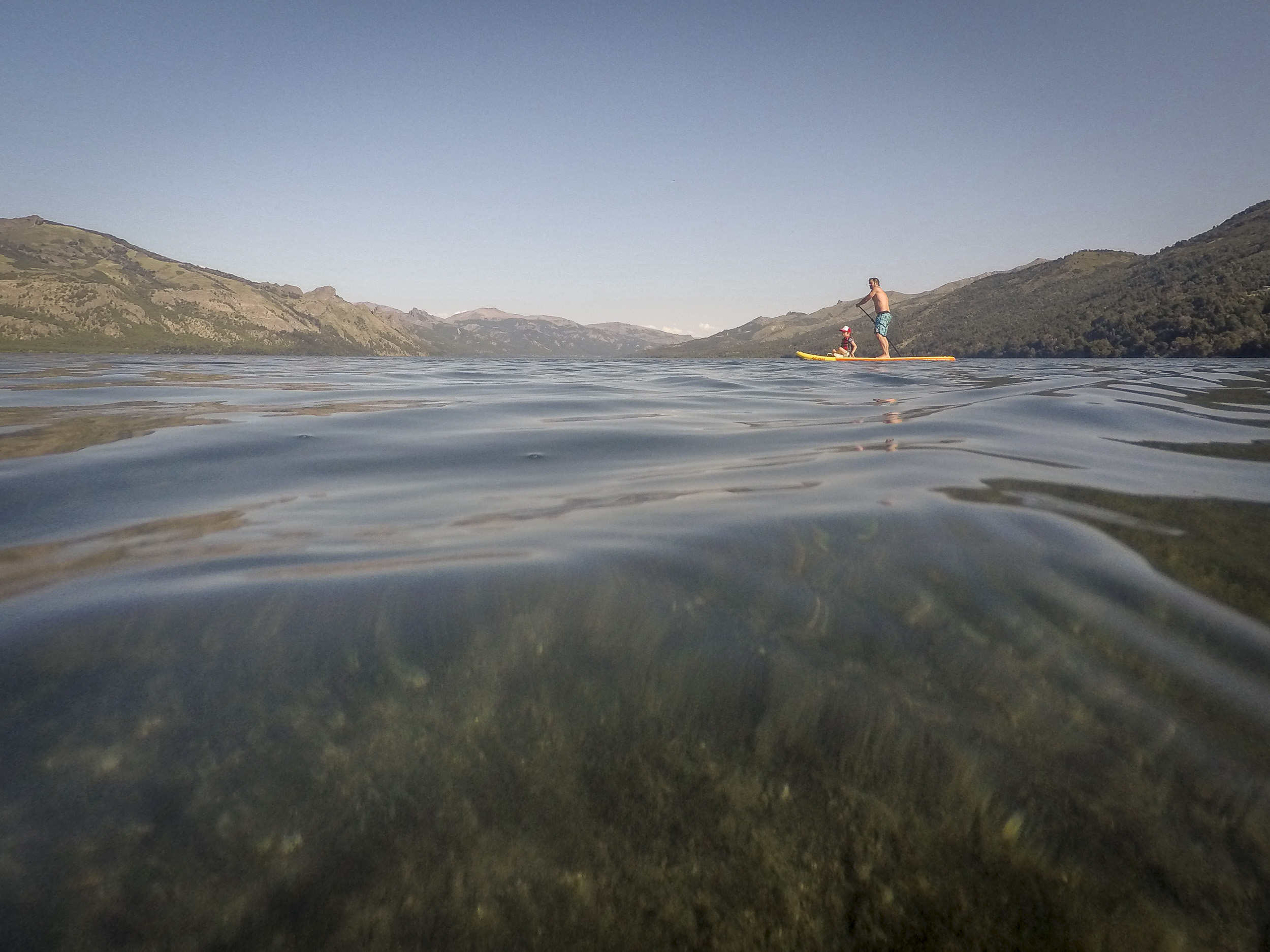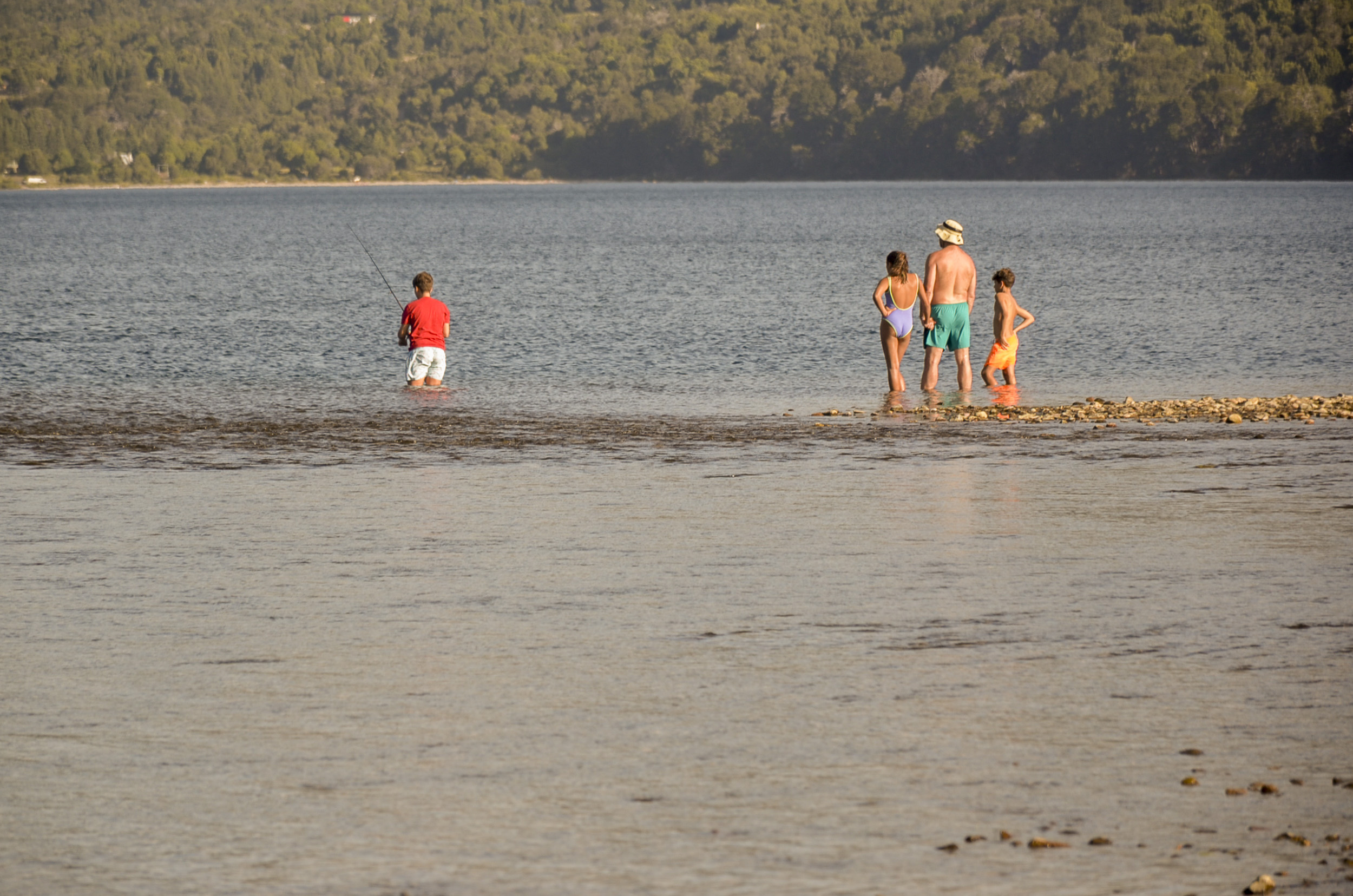 El Meliquina, te contábamos, es más frío pero más transparente:es justamente cuando se juntas muchos bañistas en el río cuando levantan el sedimento que llega hasta el lago, donde podés caminar unos diez metros hasta el veril, donde la profundidad baja abruptamente a unos tres metros.