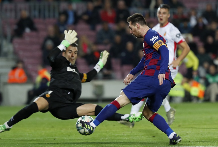 El descuento de Budimir activó al local, que antes del descanso ganaba 4 a 1 por otro tanto de Messi y uno de Suárez. Tras el segundo descuento de Budimir, el ‘‘10’’ rosarino puso cifras definitivas para que Barcelona llegue a 34 puntos.