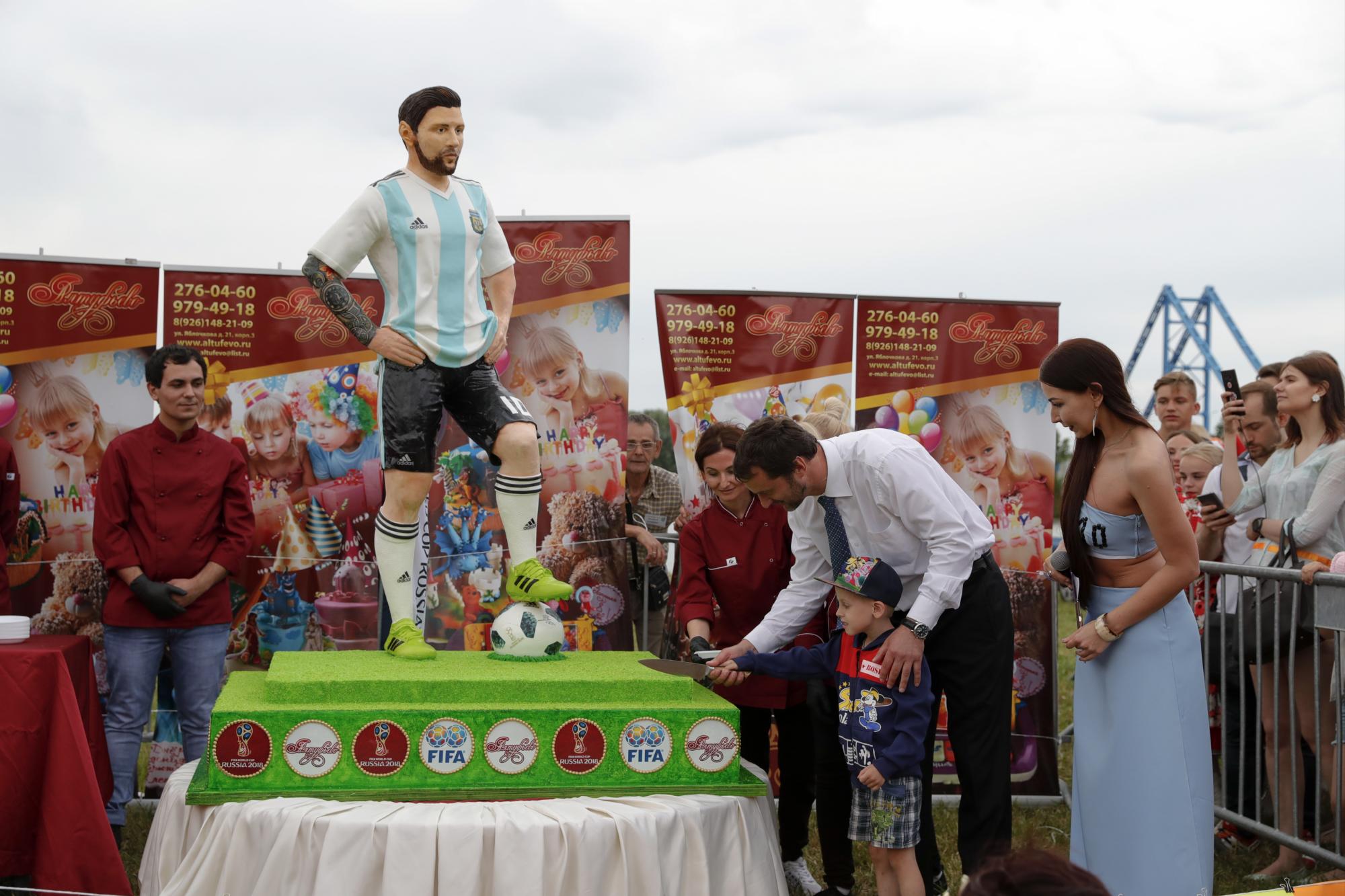 Una torta del tamaño de Messi, bandas tocando en la arena y cantantes solistas extendiendo el show bajo el abrasador sol de la tarde, mientras los remeros cruzaban la pista preparada especialmente para ellos y las familias se animaban a un chapuzón en las aguas marrones del lago Belskoe, enmarcaron la fiesta-homenaje que le dedicó al rosarino este pueblo de 20.000 habitantes.