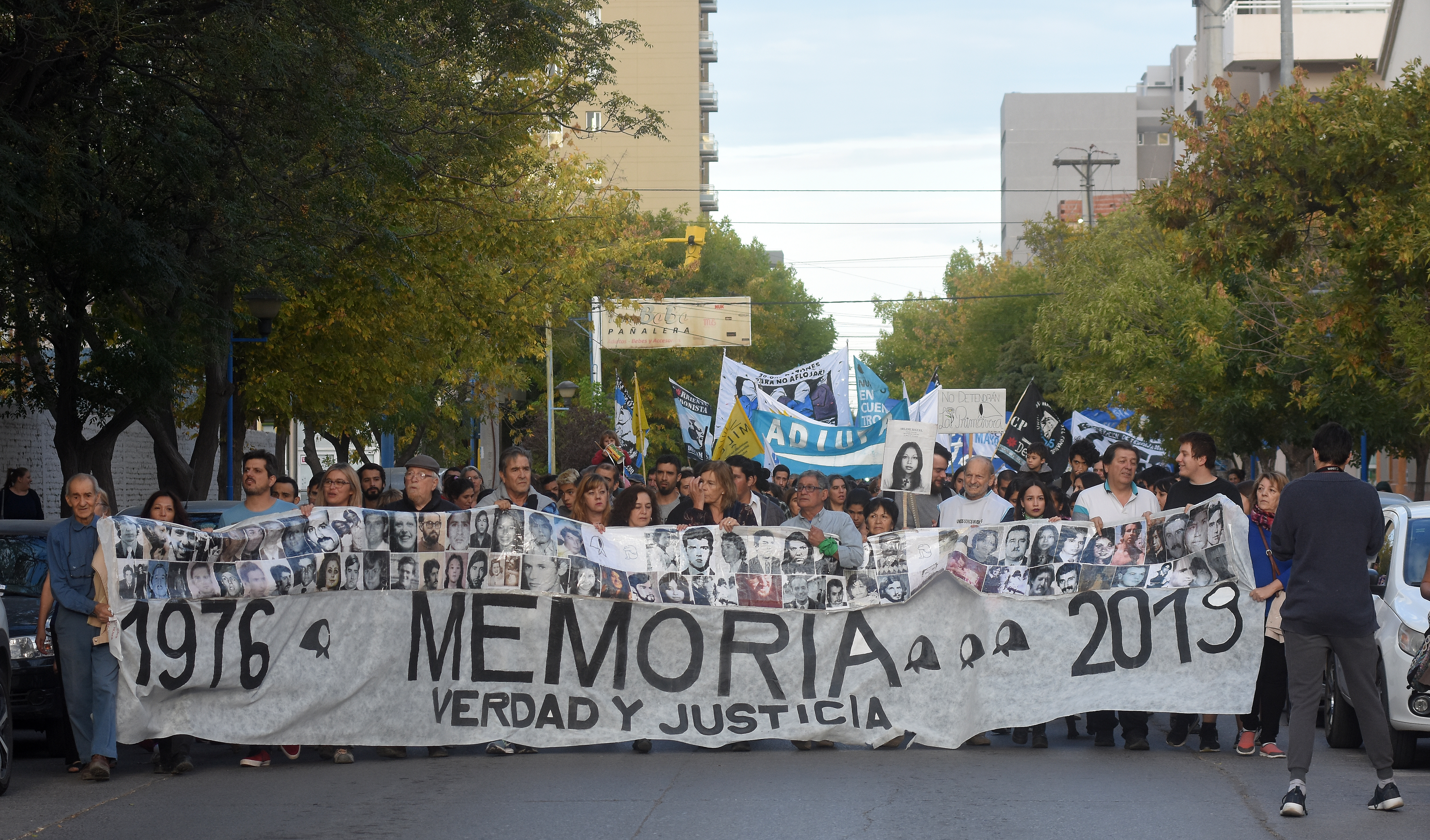 Posteriormente, las organizaciones se aproximaron al punto de encuentro, ya tradicional Avenida Roca y Tucumán, y recorrieron buena parte del centro de la ciudad. En las pancartas, se conmemoró a las personas desaparecidas durante la dictadura en la región y algunos activistas a nivel nacional.