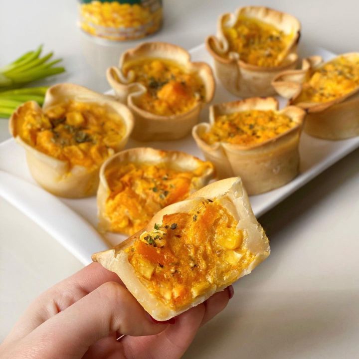 Forrar moldes de muffins con las tapas de empanadas o también pueden hacer una sola tarta grande. Rellenar con la mezcla. Llevar a horno por 35 minutos aproximadamente o hasta que veas las canastitas doradas y el relleno firme.