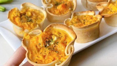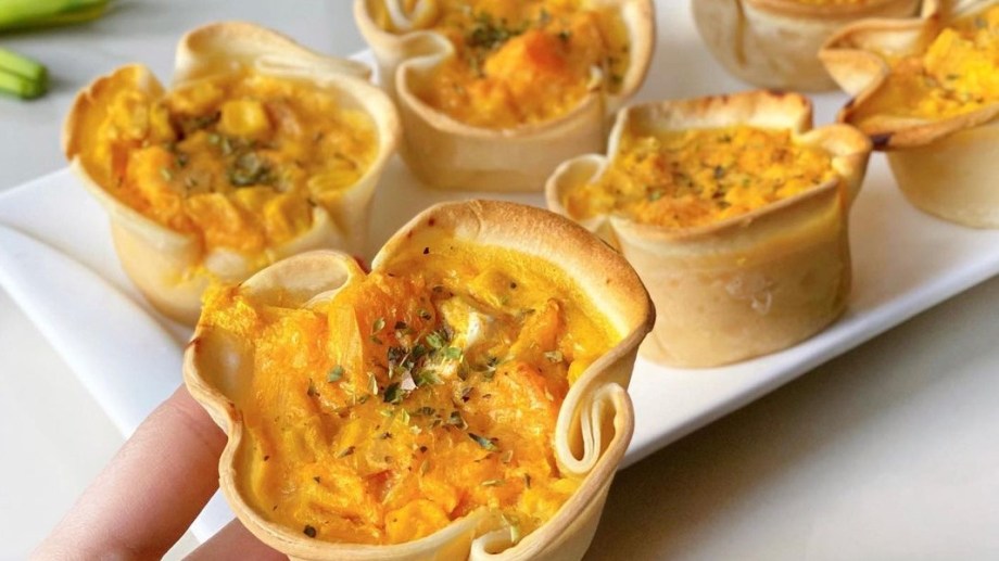 Forrar moldes de muffins con las tapas de empanadas o también pueden hacer una sola tarta grande. Rellenar con la mezcla. Llevar a horno por 35 minutos aproximadamente o hasta que veas las canastitas doradas y el relleno firme.