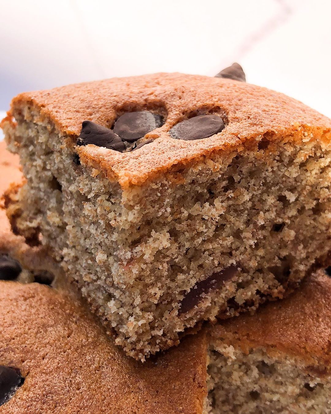 Colocar la preparación en un molde rectangular aceitado y enharinado, por arriba colocarle chips de chocolate (yo usé un molde de 20 x 20 pero usen el que tengan). Llevar a horno precalentado a 180° por 30 minutos aproximadamente o hasta introducir un palillo y que salga seco.