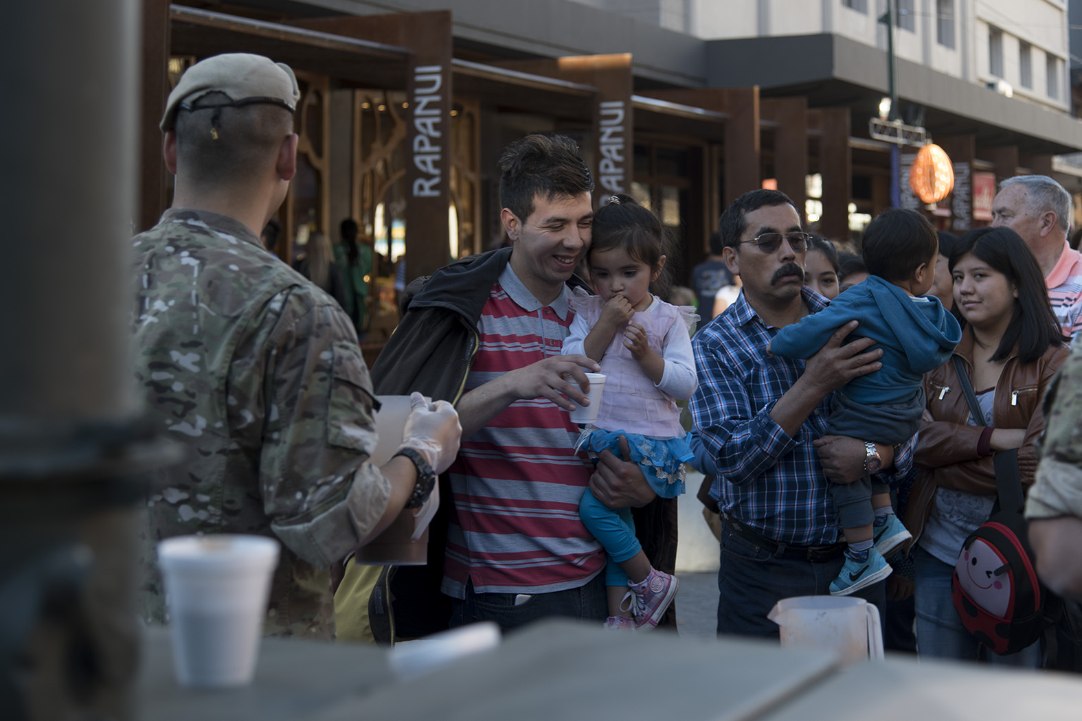 El Ejército preparó 250 litros de chocolate caliente y se encargó de la logística del reparto. Desde Villegas y Mitre la cola se formó hacia Rolando. Todos se llevaron su vaso.