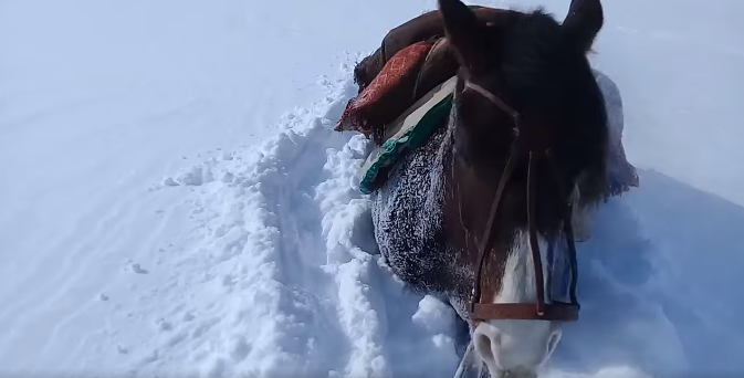 Nomás al arrancar sacó el celular para filmar lo que veía: «¡Mirá hasta dónde llega la nieve. 11 y 20, vamos rumbeando para el pueblo…», dijo. Partió con dos caballos. Espiri, el que montaba, que le cuida a unas amigas. Y Mosca, el suyo. “Los dos muy bien alimentados, herrados y cuidados en un galpón. Lo aclaro porque gente que no conoce la vida de campo dijo que uno los maltrata cuando vieron el video. Y no es así. Ellos pueden hacer lo que hicieron”.