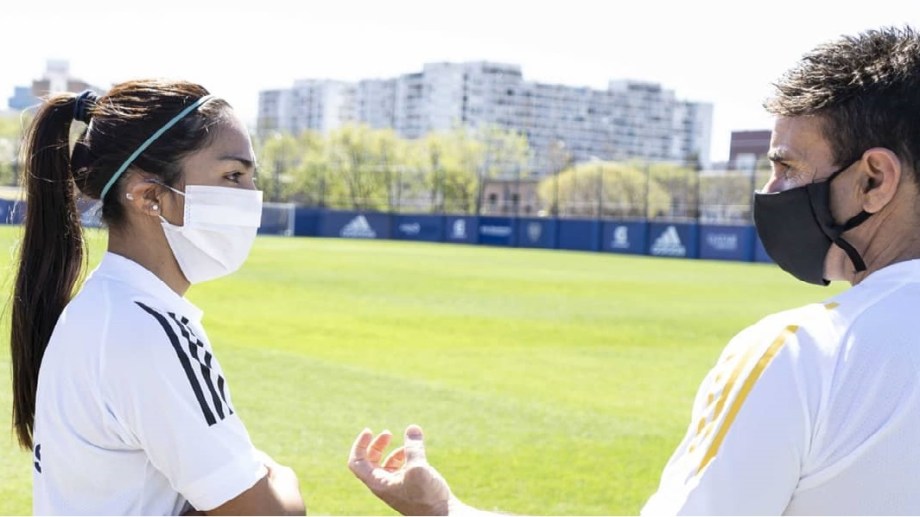 Luego del largo receso por la pandemia de coronavirus, el equipo femenino de Boca regresó a los entrenamientos en los últimos días con la presencia de la barilochense Miriam Mayorga.